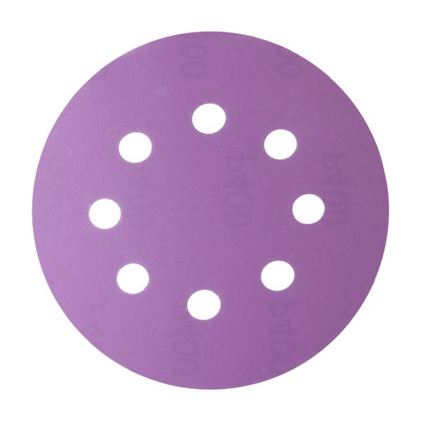 Абразивный круг на бумажной основе HANKO PP627 Purple Paper диаметром 125 мм, с 8 отверстиями, идеально подходит для выполнения работ «по-сухому». Используемое абразивное зерно из оксида алюминия грубого сорта создаёт эффективное решение для агрессивной обработки поверхностей, включая снятие краски до чистого металла, формовку и шлифовку зашпатлёванных областей, а также пластиковых компонентов. Латексная пропитка бумаги обеспечивает абразиву мягкость и эластичность, что positively сказывается на его работе. Специальное покрытие позволяет предотвратить засорение и образование комков на рабочей поверхности, что увеличивает срок службы круга и эффективность шлифовки.