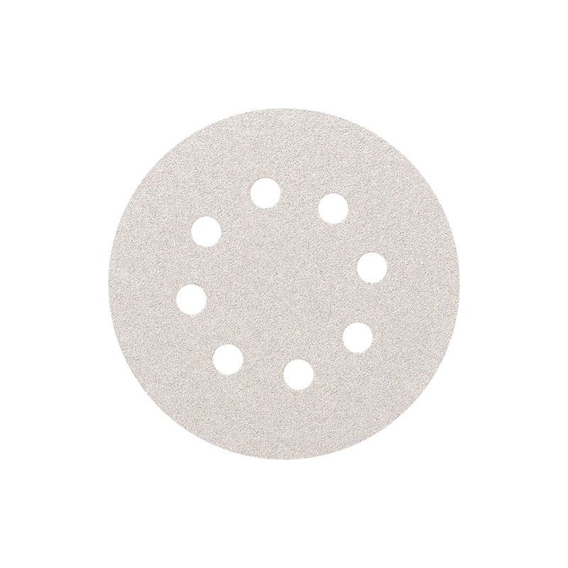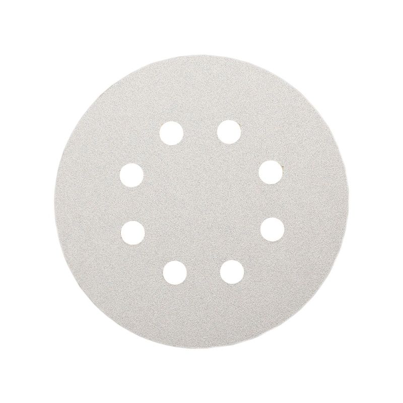 Абразивный круг SMIRDEX White имеет диаметр 125 мм и оснащён 8 отверстиями для эффективного удаления пыли и увеличения срока службы.