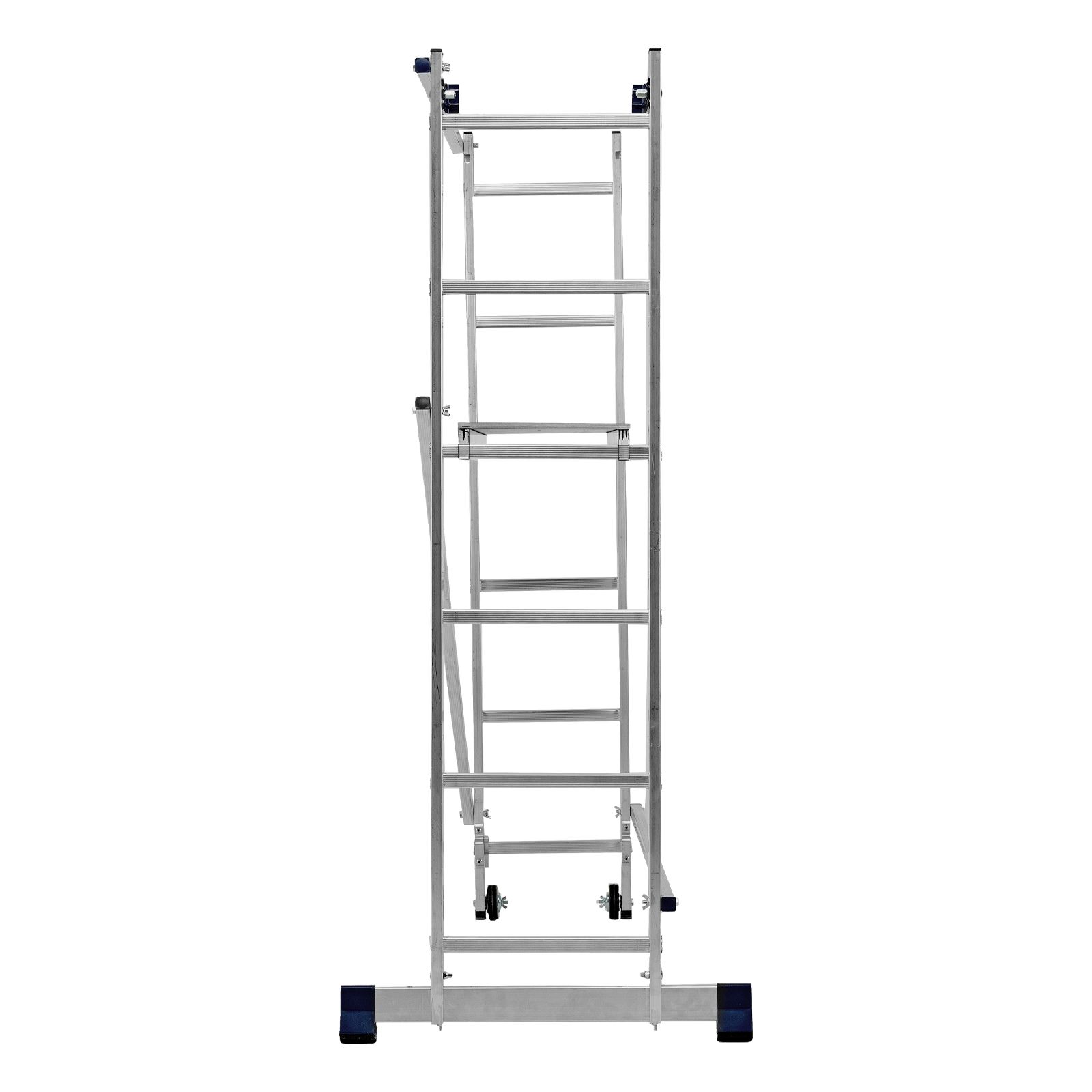 Лестница-помост 3 в 1 97970 необходима для проведения малярных и штукатурных работ на высоте нескольких метров. Площадка выдерживает нагрузку 150 кг, поэтому на ней может расположиться мастер с необходимыми инструментами. Помост трансформируется в двустороннюю стремянку и раздвижную приставную лестницу, что расширяет возможности его использования.