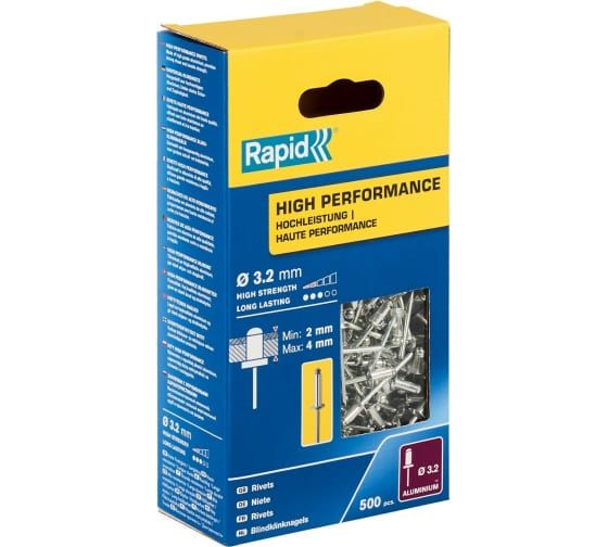 Представляем вашему вниманию высокопроизводительную алюминиевую заклепку RAPID R размером 3.2х8 мм (артикул 5001431), упакованную в удобную коробку по 500 штук. Эти заклепки предназначены для выполнения разнообразных монтажных и ремонтных задач, обеспечивая надежное соединение материалов.