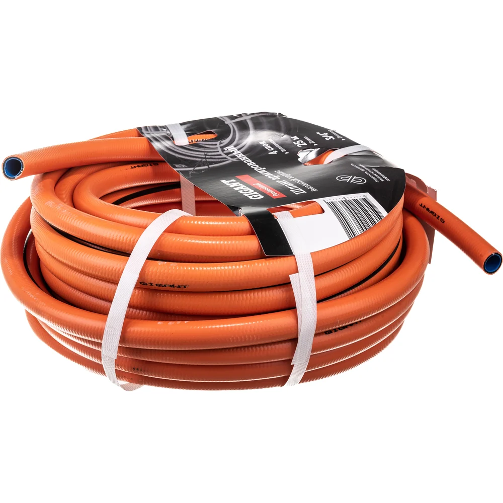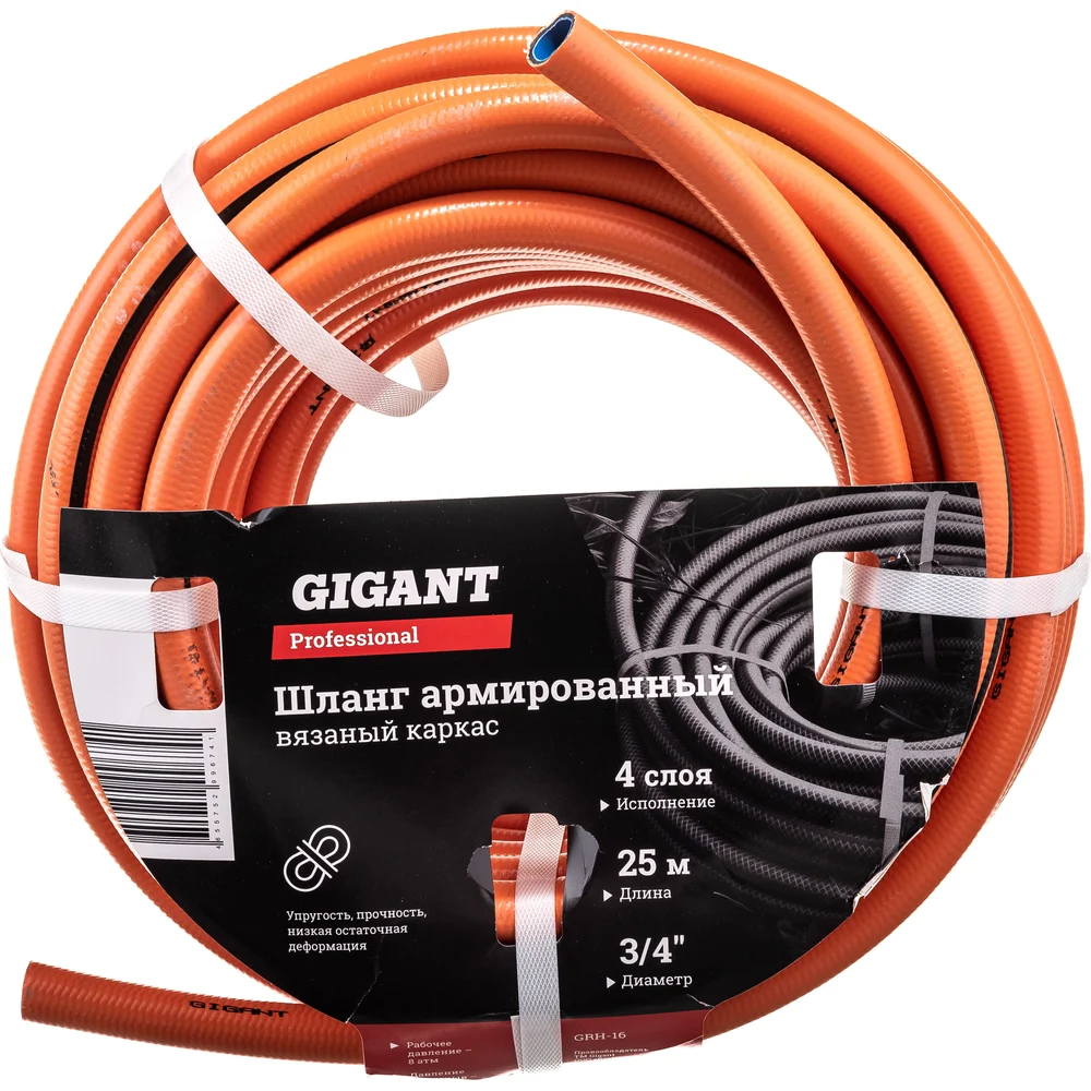 Шланг Gigant имеет армированную конструкцию из ПВХ, отличается низкой остаточной деформацией, упругостью и прочностью за счет пластиката специальной рецептуры. Выдерживает широкий диапазон температур - от -10°С до +60°С и давление до 8 бар. Длина шланга - 25 метров, количество слоев - 4, диаметр - 3/4 дюйма. Шланг подходит для полива дачного или садового участка. Шланг состоит из 4 слоев: первые 2 - из ПВХ, которые придают ему гибкость; третий - из многонитиевого полиэстера - упрочняет конструкцию; четвертый - внутренний стабилизирующий слой. Такое строение увеличивает срок службы шланга. Гладкая поверхность шланга предотвращает его от повреждений и порезов, а также обеспечивает его легкое перемещение на различных неровностях. Яркий цвет шланга позволит ему не затеряться в условиях недостаточной освещенности и в высокой траве на садовом участке. Gigant – собственная торговая марка компании ВсеИнструменты.ру, разработанная специально для требовательных мастеров. Продукция представлена профессиональными и бытовыми инструментами, имеет доступную цену и высокое качество. При изготовлении товаров Gigant используется современное оборудование и прочные материалы. Производство осуществляется на современных предприятиях России и Азии. Тестирование товаров осуществляется в два этапа, каждая партия инструментов проходит проверку на соответствие стандартам и заявленным техническим характеристикам. Это является залогом качества и надежности готового продукта. Продукция представлена широкой линейкой инструментов. У нас можно приобрести ручной инструмент, строительный, садовый, сантехнический, климатический, крепежный, автогаражный, а также станки, расходные материалы и многое другое.