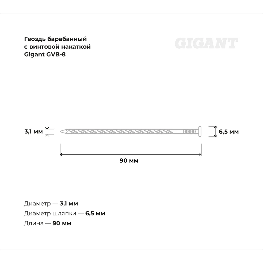 Барабанный гвоздь Gigant с винтовой накаткой CNW 3,1х90 3600шт GVB-8 создан для прочного и долговечного соединения материалов. Каждый гвоздь обработан специальным клеем-расплавом, что улучшает надежность фиксации и обеспечивает равномерное распределение нагрузки. Высокие стандарты производства и строгий контроль качества гарантируют стабильность и соответствие промышленным требованиям. Винтовая накатка обеспечивает повышенную надежность при фиксации в дереве. Подходит для использования с гвоздезабивными пистолетами (нейлерами) большинства производителей: ЗУБР, Pegas Pneumatic, FUBAG, RGN, Yoshi и другими. Области применения: В строительстве для возведения каркасных конструкций, закрепления балок, стропил, лаг и деревянных настилов. В производстве деревянной тары и поддонов для прочного соединения элементов обрешетки и упаковки. В мебельном производстве и изготовлении декоративных деталей для надежного крепления деревянных компонентов. В ремонте и отделочных работах для крепления листовых материалов и деревянных облицовок.