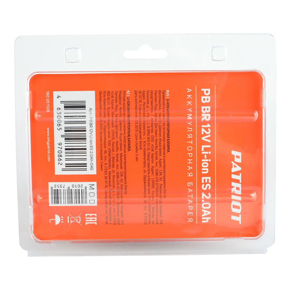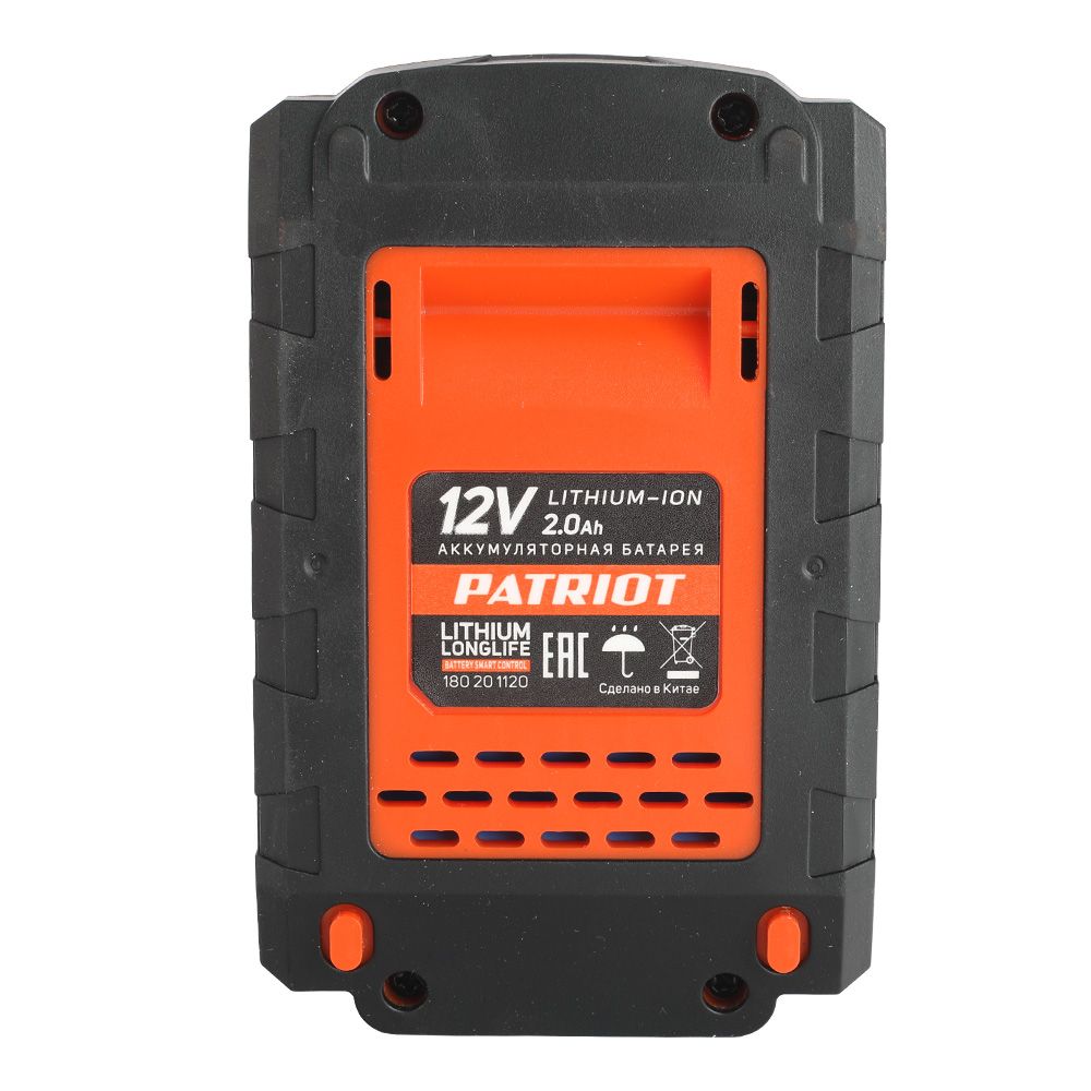 Батарея аккумуляторная Li-ion для шуруповертов Patriot. Емкость аккумулятора: 2,0 Ач, напряжение: 12В.