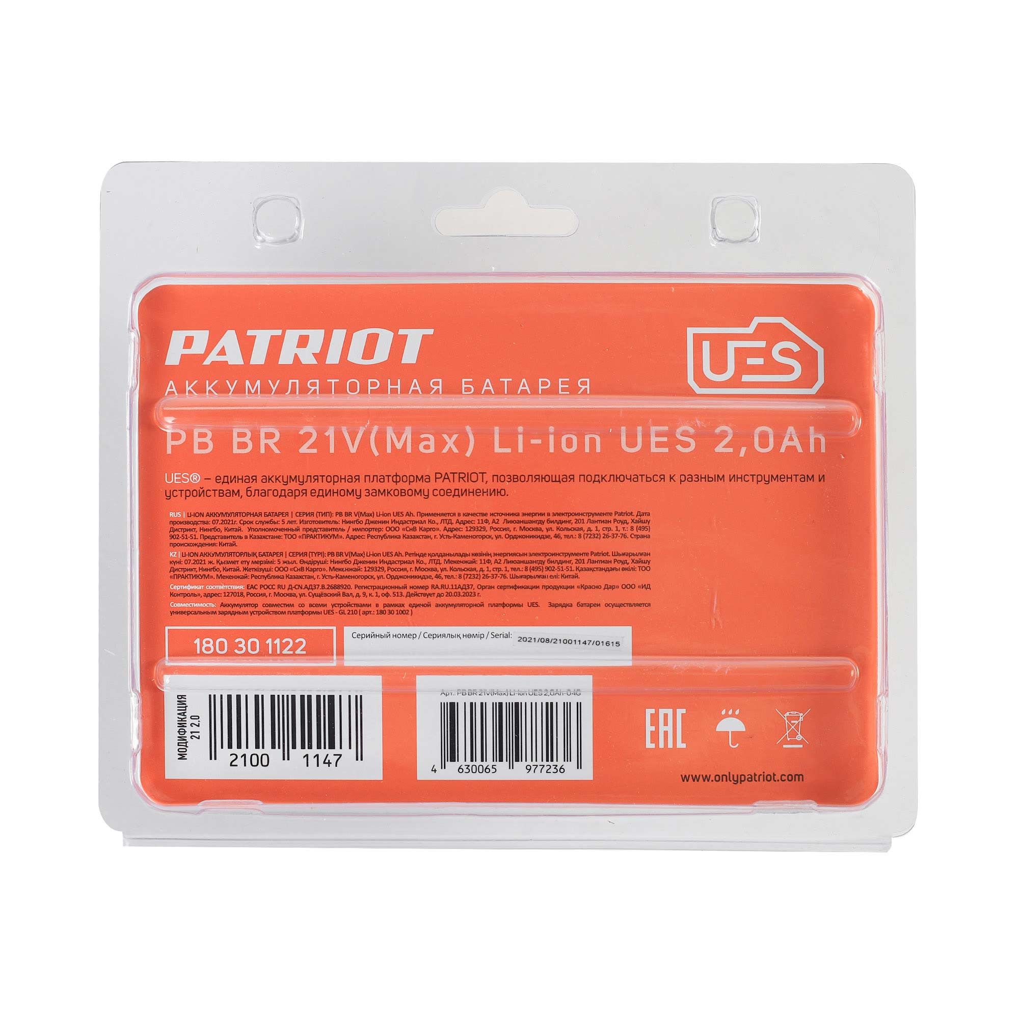 • Единая аккумуляторная платформа UES – аккумуляторы, совместимые с большинством аккумуляторной техники Patriot;