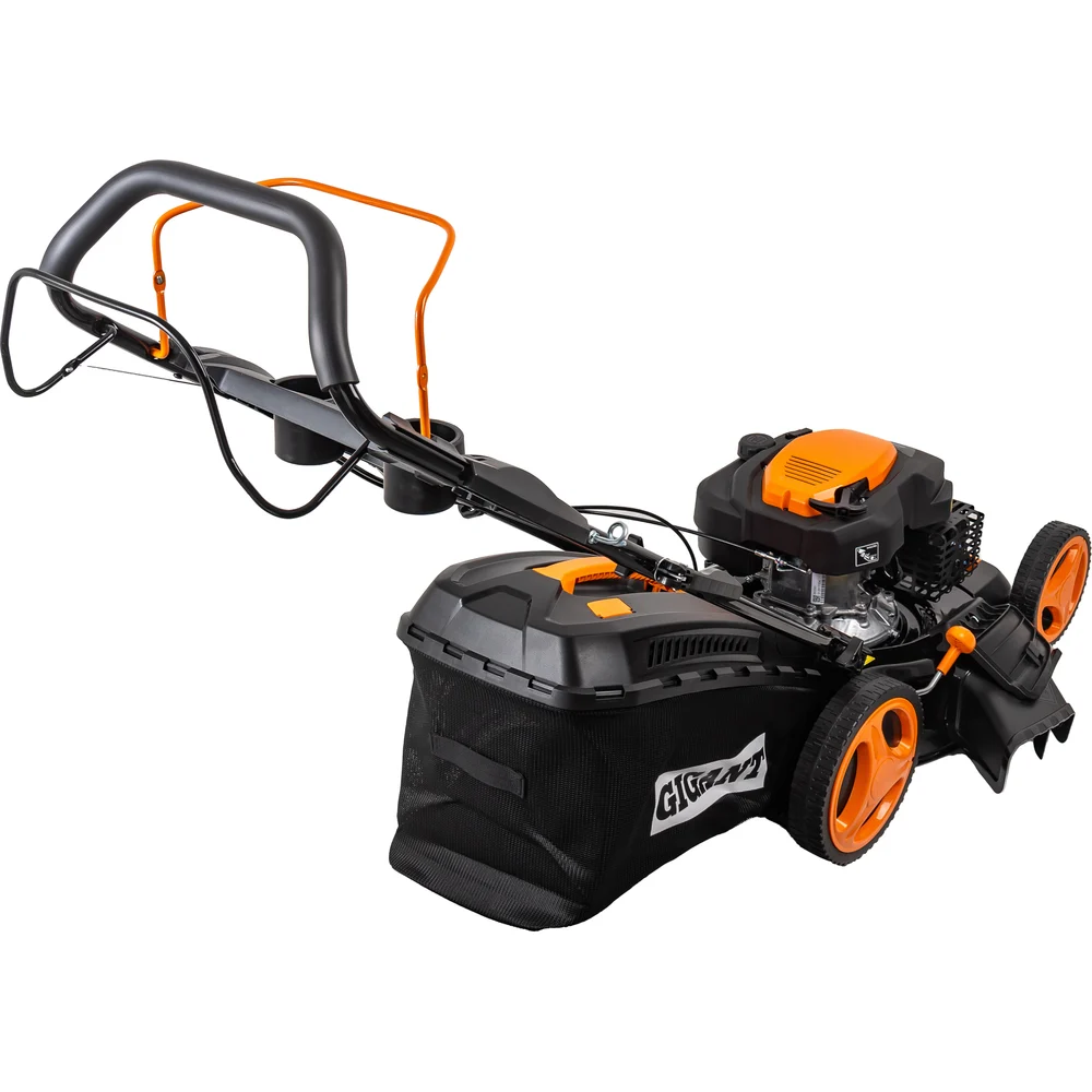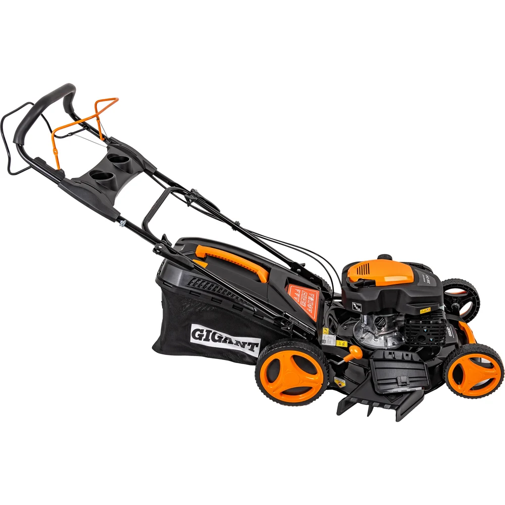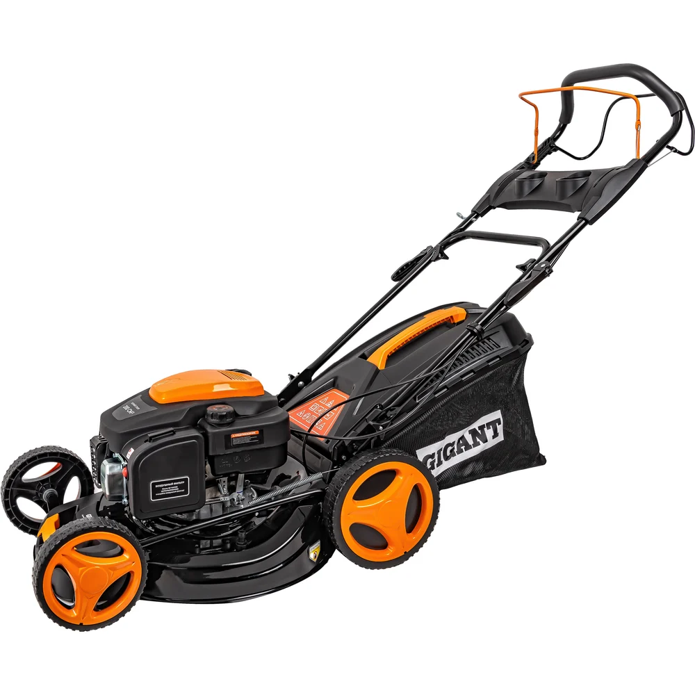 Бензиновая газонокосилка Gigant 53 см 6 л.с. PLM-04 не привязана к источнику питания и отличается многофункциональностью. Укомплектована травосборником и дефлектором. Регулятор высоты среза расположен около заднего колеса. Семь режимов регулировки в диапазоне 30-75 мм. Рукоятка настраивается под рост пользователя и складывается для компактного хранения агрегата.