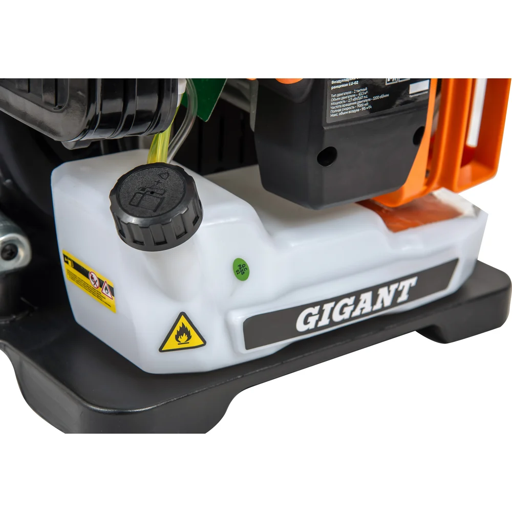 Бензиновая ранцевая воздуходувка Gigant 2,7 кВт, функция обдув LU-02 используется для выполнения простых задач по уборке дорожек, тропинок от листвы, веток и скошенной травы. Оснащена мощным двигателем, который обеспечивает подачу большого объема воздуха. Широкие плечевые ремни с накладками обеспечивают максимальный комфорт при длительной работе. Широкое основание позволяет расположить воздуходувку на любой горизонтальной поверхности. Дополнительные характеристики Максимальные обороты без нагрузки: 7500 об/мин; Обороты холостого хода: 3000 об/мин; Максимальный расход топлива: 557 г/кВт*ч; Уровень мощности звука: 110 дБ; Уровень вибрации: 5.4 м/с2.