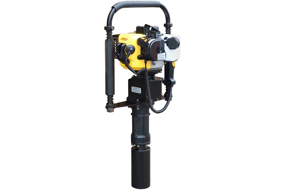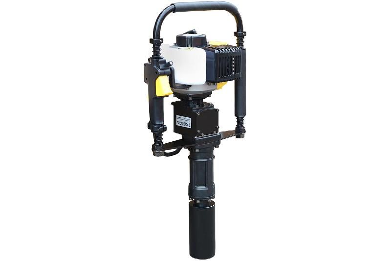 Копер с бензиновым двигателем для забивания свай диаметорм до 70 мм. Мощность двигателя инструмента — 1,7 кВт. Главным образом этот инструмент используется при строительстве ограждений. В отличии от электрического, он более мощный и не требует источника электропитания. По сравнению с пневматическими или гидравлическими, использование бензинового копера не требует дополнительной спецтехники. Значительно ниже по стоимости.