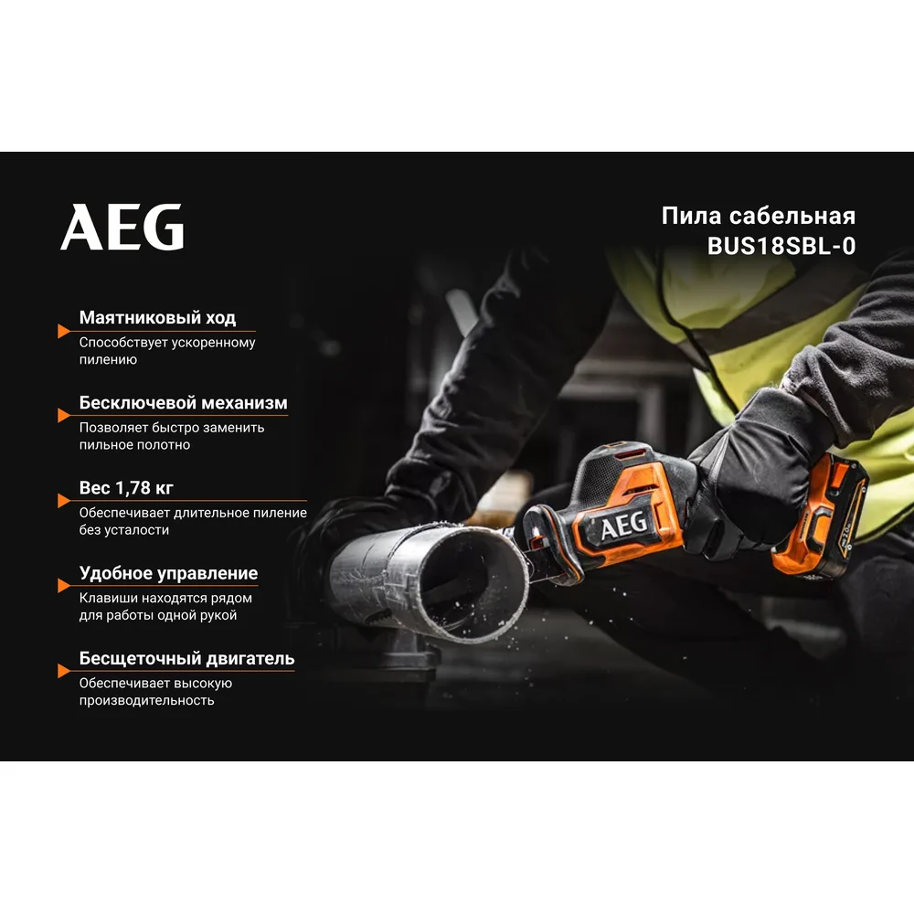 Сабельная бесщеточная пила BUS18SBL-0 AEG 4935479662 позволяет работать одной рукой и идеальна для выполнения работы в условиях ограниченного пространства. Бесщеточный двигатель PROFLUX™ и электроника Coretek обеспечивают впечатляющие мощность и продолжительность работы. Эластичное покрытие корпуса двигателя позволяет так же комфортно работать двумя руками. 22 мм ход пильного полотна позволяет работать эффективно. 3200 дв/мин позволяют резать как арматуры, так и листовой металл быстро и аккуратно. Бесключевой механизм фиксации оснастки позволяет быстро производить ее замену. Совместима с системой PRO18B. Макс. режущая способность в пластике: 75 мм