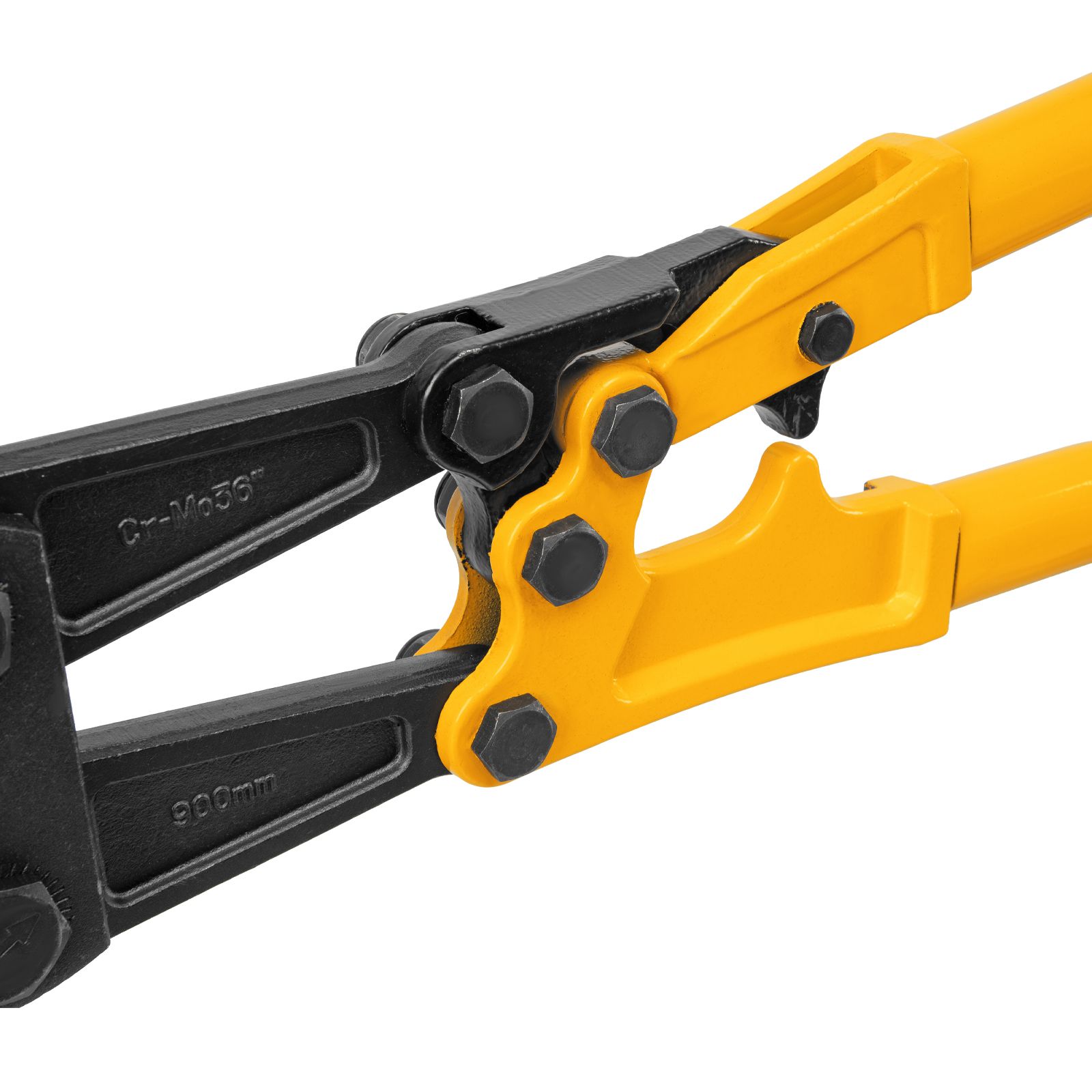 Болторез Denzel 78539 длиной 900 мм (36 дюймов), из стали Cr-Mo, предназначен для перекусывания стальных прутков диаметром 14,3 мм, болтов и шурупов, тросов, разнородной проволоки.