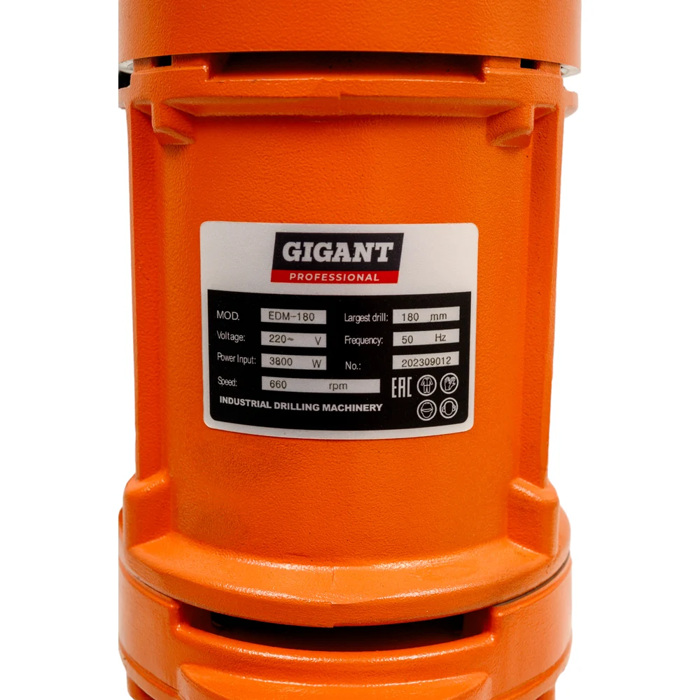 Cверлильная машина Gigant Professional EDM-180 предназначена для работы с бетоном, кирпичом и подобными материалами. Защитная фрикционная муфта предохраняет редуктор от поломки. Имеется возможность подключения воды. Наличие стойки упрощает продолжительную работу с большим усилием.