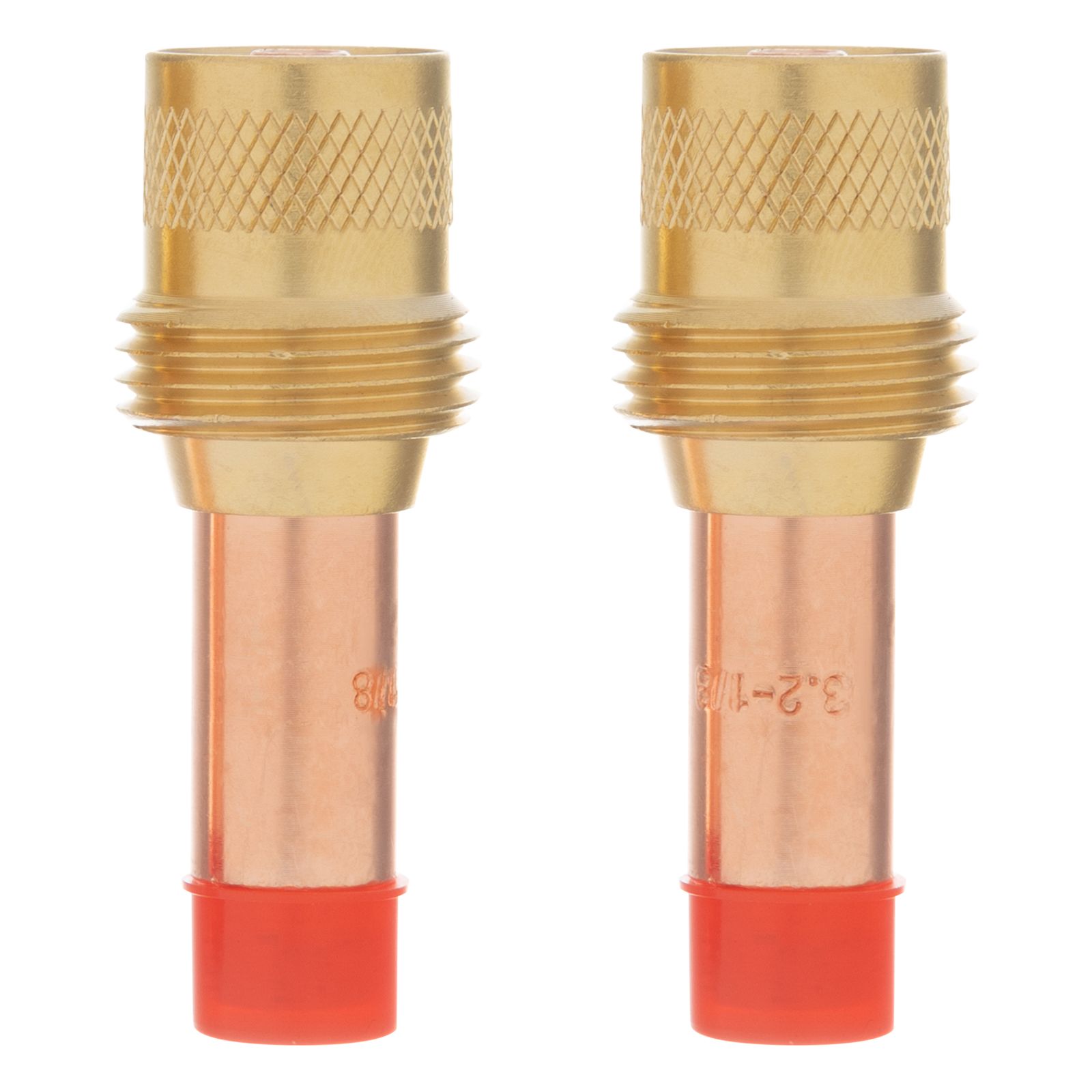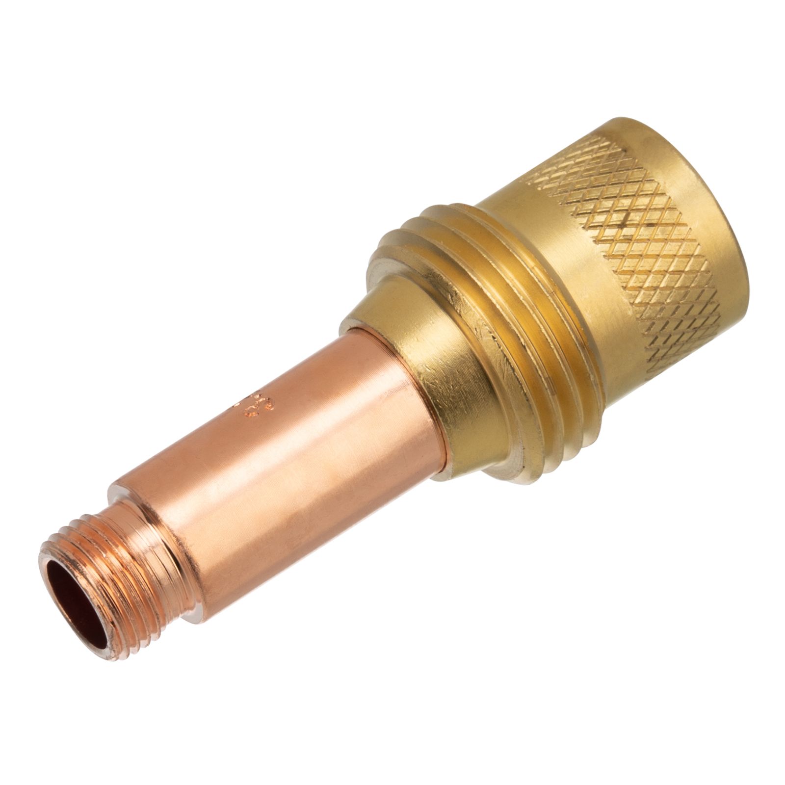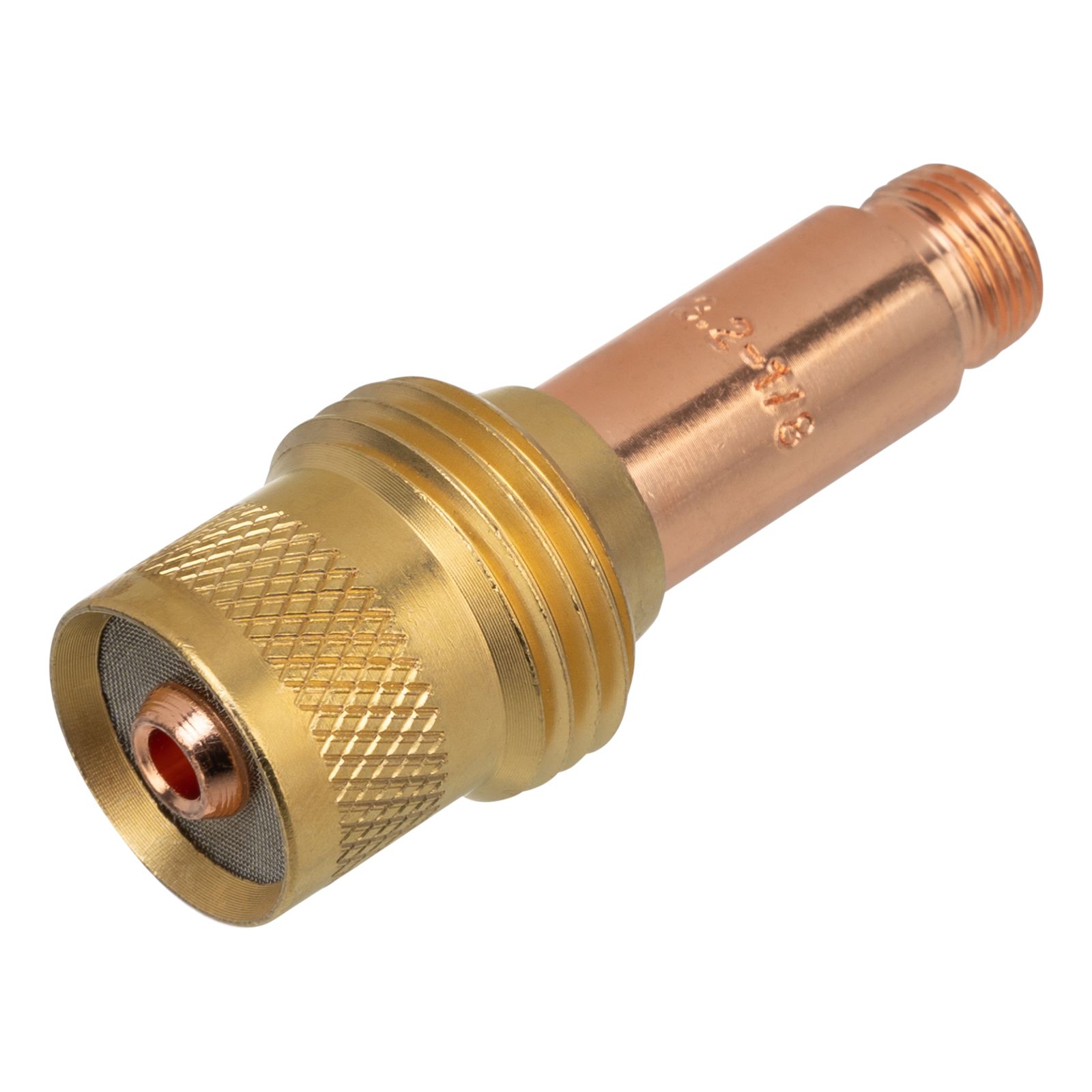 Держатель цанги Denzel 93658 входит в набор из 2 шт. и надежно фиксирует в сопле газовой горелки цангу с электродом диаметром 2,4 мм. Обеспечивает более равномерное распределение защитного газа в зоне сварки, чем при использовании стандартного цангодержателя. Используется для аргонодуговой сварки и совместим со сварочными горелками TIG 93643, 93644, а также может устанавливаться на модели других торговых марок с аналогичным посадочным разъемом.