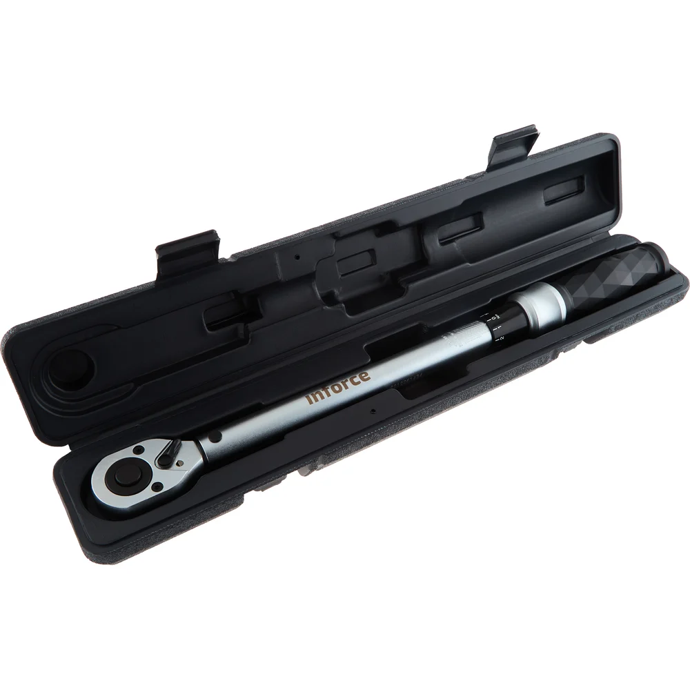 Динамометрический ключ 1/2" 40-210 Нм Inforce 06-05-105 необходим для работы с контролем усилия при затяжке. Корпус и трещоточный механизм выполнены из прочной стали. Инструмент уложен в пластиковый кейс, который исключает появление погрешностей при переноске устройства.