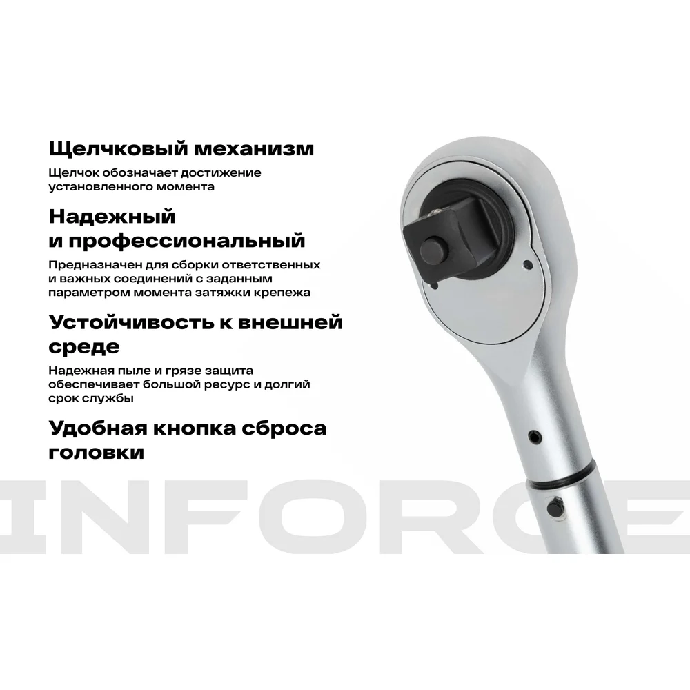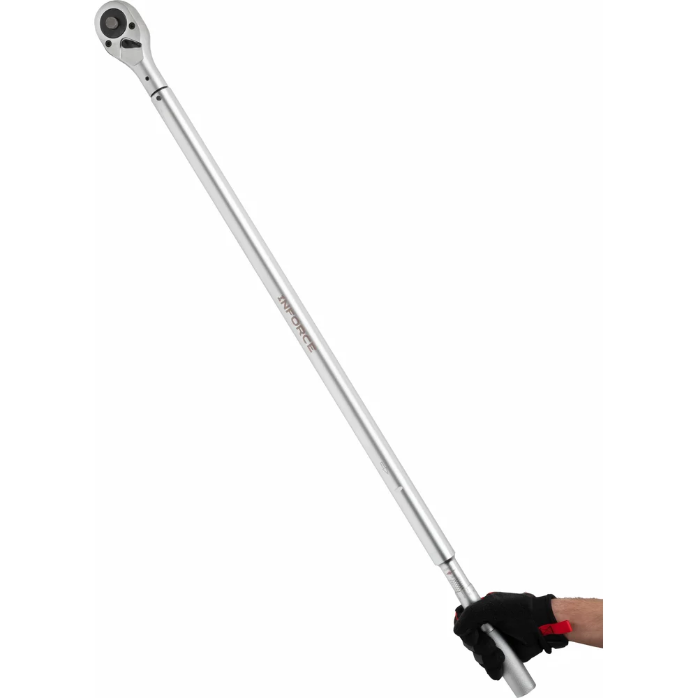 Динамометрический ключ Inforce 06-05-201 предназначен для профессионального использования, обеспечивая надежность и точность в работе с высокими нагрузками. Он позволяет регулировать усилие от 300 до 1500 Нм, что делает его универсальным инструментом для различных задач. Ключ оснащен трещоткой, что упрощает процесс затяжки и повышает удобство использования. Изготовленный из прочной стали, он гарантирует долговечность и устойчивость к износу. Длина инструмента составляет 1850 мм, что обеспечивает оптимальный рычаг для приложения усилия.