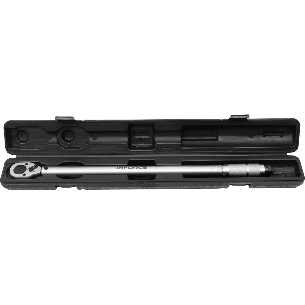 Динамометрический ключ Inforce 06-05-203 представляет собой надежный инструмент для профессионального использования. Он обеспечивает точное затягивание крепежных элементов в диапазоне от 70 до 340 Нм, что делает его универсальным решением для различных задач. Ключ оснащен трещоточным механизмом, который упрощает работу в ограниченных пространствах и повышает удобство использования. Изготовленный из прочной стали, он гарантирует долговечность и устойчивость к износу. Длина инструмента составляет 570 мм, что позволяет применять его в труднодоступных местах.