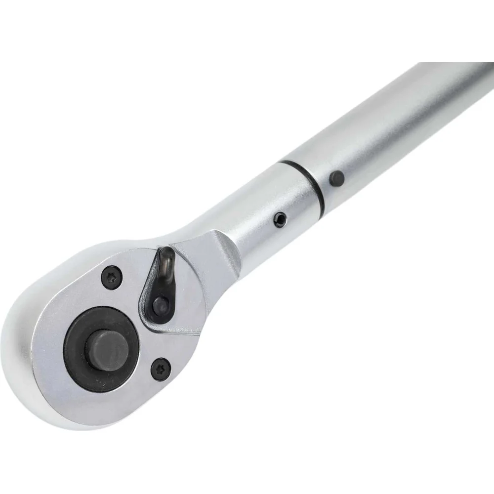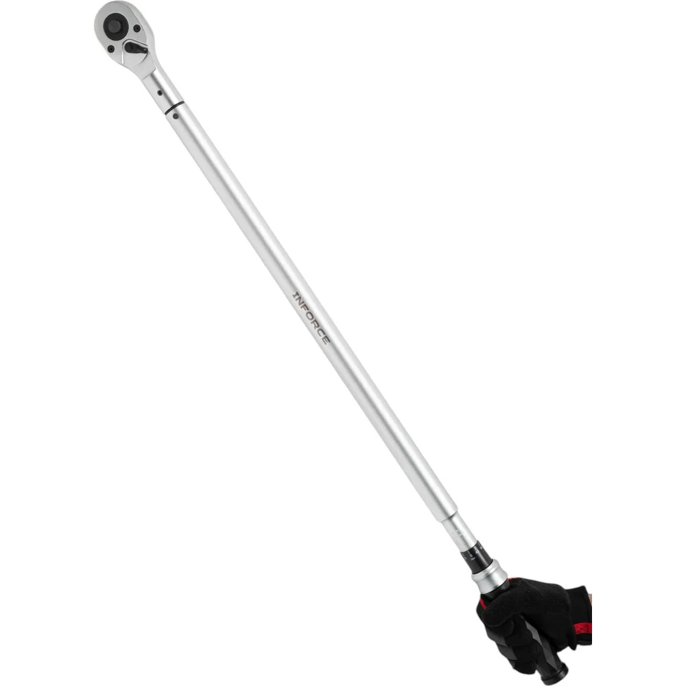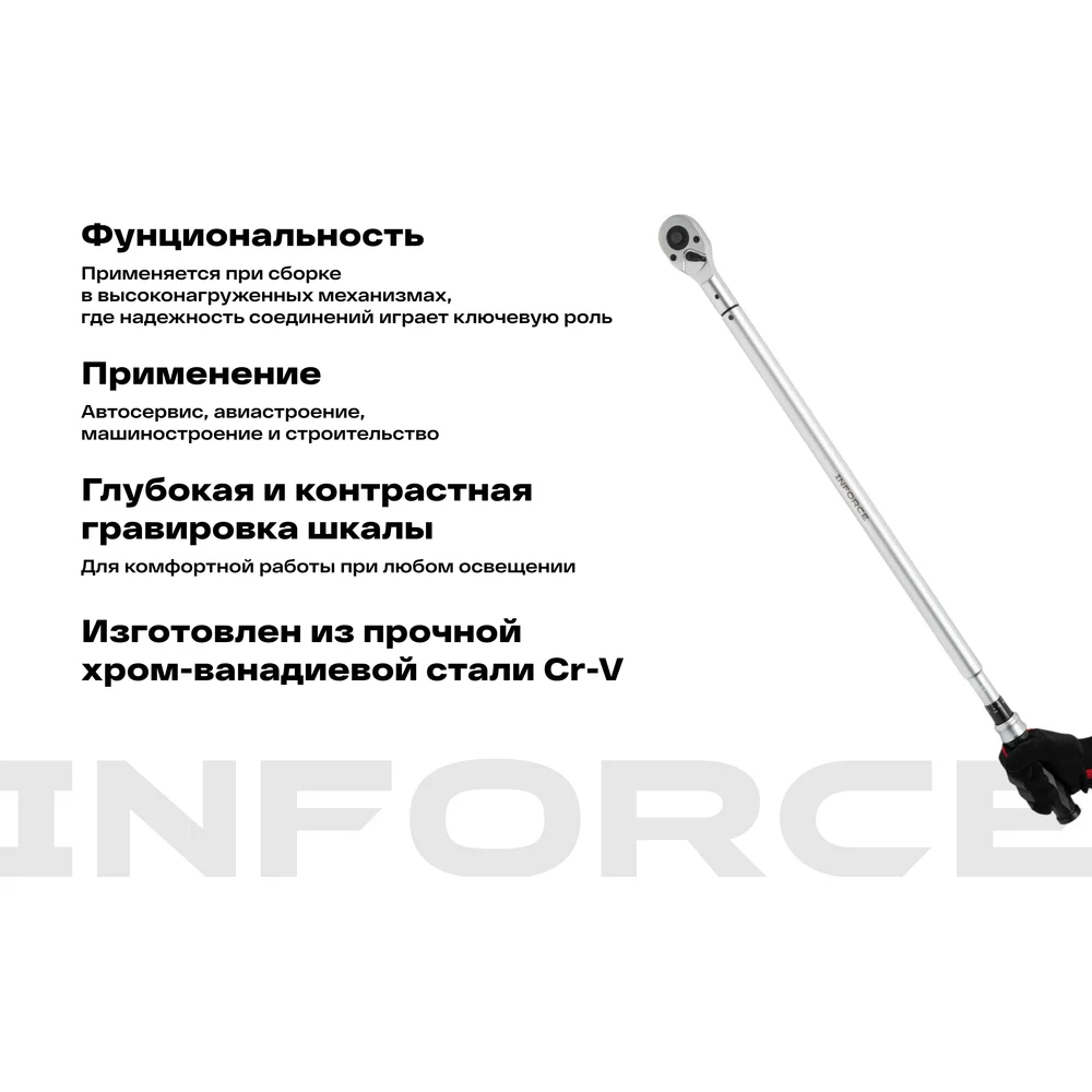Динамометрический ключ Inforce 06-05-204 представляет собой надежный инструмент для профессионального использования. Он обеспечивает точное измерение усилия в диапазоне от 200 до 600 Нм, что делает его подходящим для различных задач, требующих контроля крутящего момента. Ключ имеет предельный тип, что гарантирует его долговечность и надежность в эксплуатации. Длина инструмента составляет 1010 мм, что позволяет удобно работать с ним даже в труднодоступных местах. Наличие трещотки облегчает процесс затяжки, а квадрат 3/4 дюйма обеспечивает совместимость с широким спектром насадок. Изготовленный из стали, ключ отличается прочностью и устойчивостью к износу.