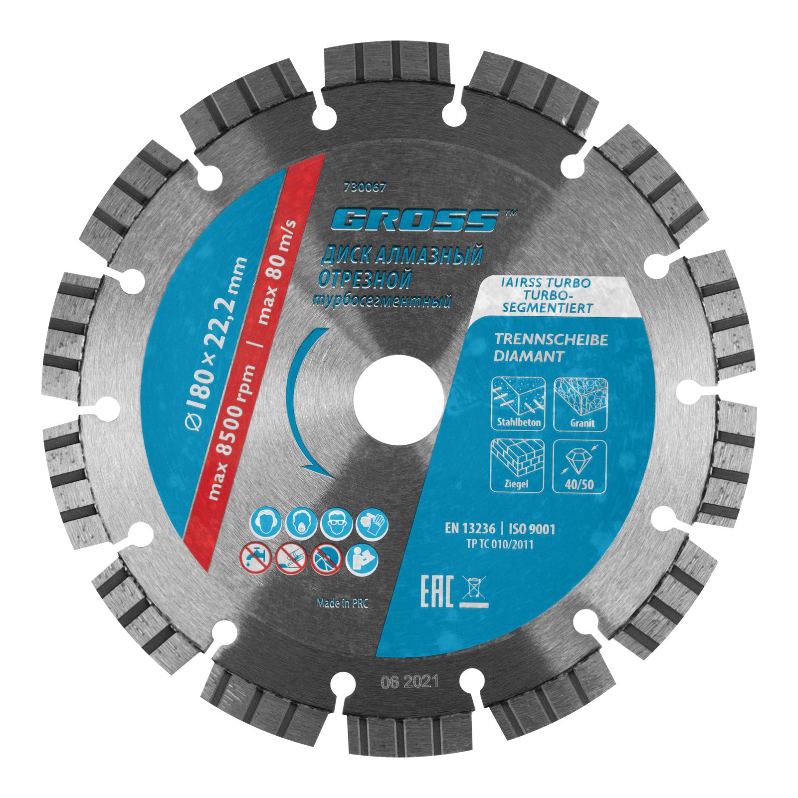 - Надежная фиксация алмазного слоя — лазерная приварка сегментов обеспечивает диску высокую стойкость к нагрузкам.