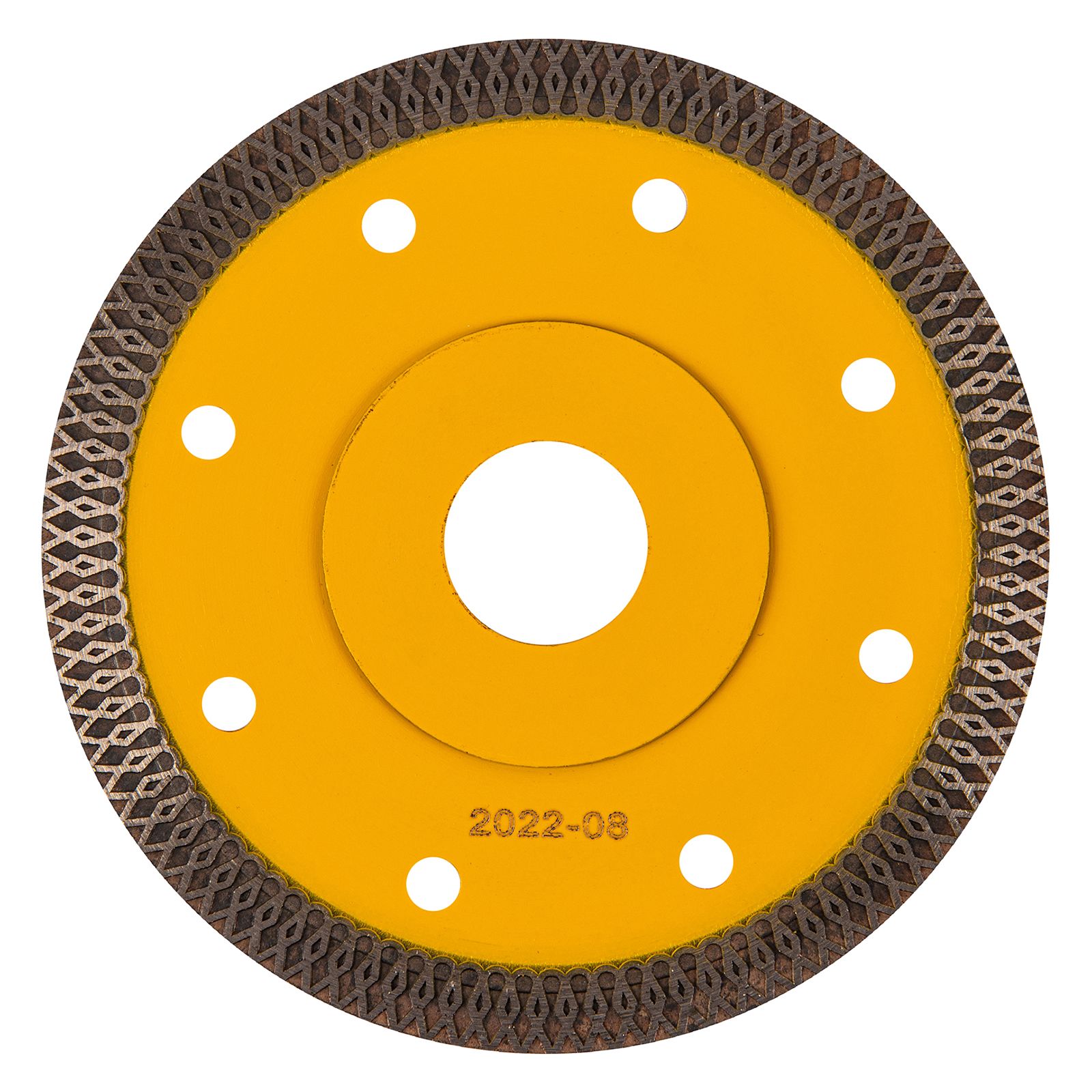 Сплошной отрезной алмазный диск Denzel 73057 диаметром 115 x 22,2 мм, супертонкий, изготовлен по технологии горячего прессования и предназначен для сухого и мокрого реза керамогранита, керамической плитки, мрамора, кафеля, камня. Устанавливается на углошлифовальную машину или плиткорез с соответствующим посадочным диаметром, подходит для выполнения большого объема работ.