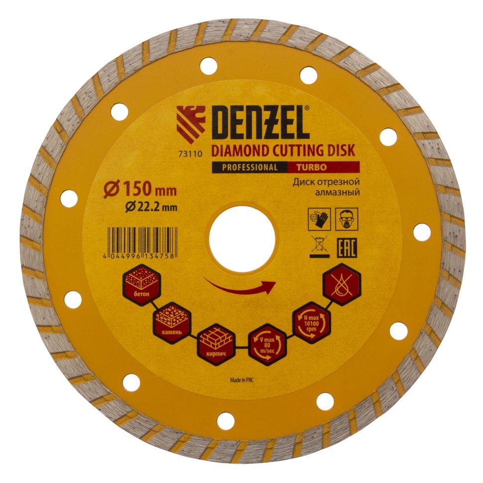 Алмазный отрезной диск Denzel Turbo диаметром 150 х 22.2 мм (модель 73110) предназначен для сухой резки различных строительных материалов, включая камень, кирпич, а также свежий и твердый бетон, включая железобетон. Этот диск эффективно применяется с угловыми шлифовальными машинами (УШМ) с посадочным отверстием 22.2 мм как в бытовых, так и в профессиональных условиях. Конструкция турбо-диска снижает ударные нагрузки во время резки, что исключает необходимость в водяном охлаждении.