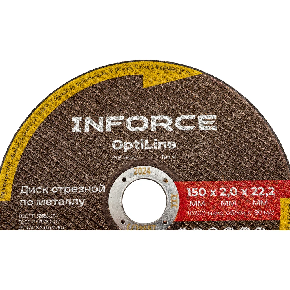 Диск отрезной по металлу OptiLine (150x2.0x22.2 мм) Inforce INB15020 является сменным элементом для угловых шлифовальных машин. Применяется для резки металлических изделий. Диск обладает высокой производительностью и большим ресурсом работы. Оснастка изготавливается на современном оборудовании под строгим контролем качества.