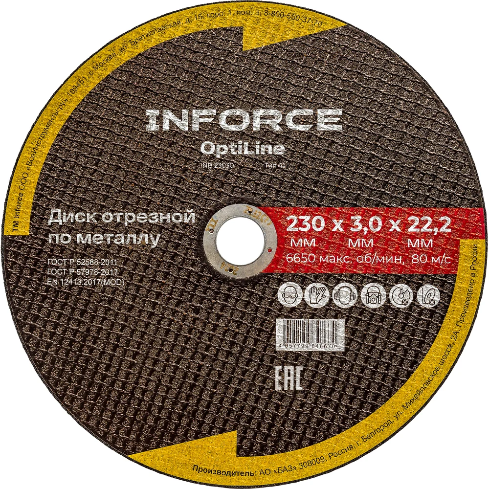 Диск отрезной по металлу OptiLine (230x3.0x22.2 мм) Inforce INB23030 является сменным элементом для угловых шлифовальных машин. Применяется для резки металлических изделий. Диск обладает высокой производительностью и большим ресурсом работы. Оснастка изготавливается на современном оборудовании под строгим контролем качества.