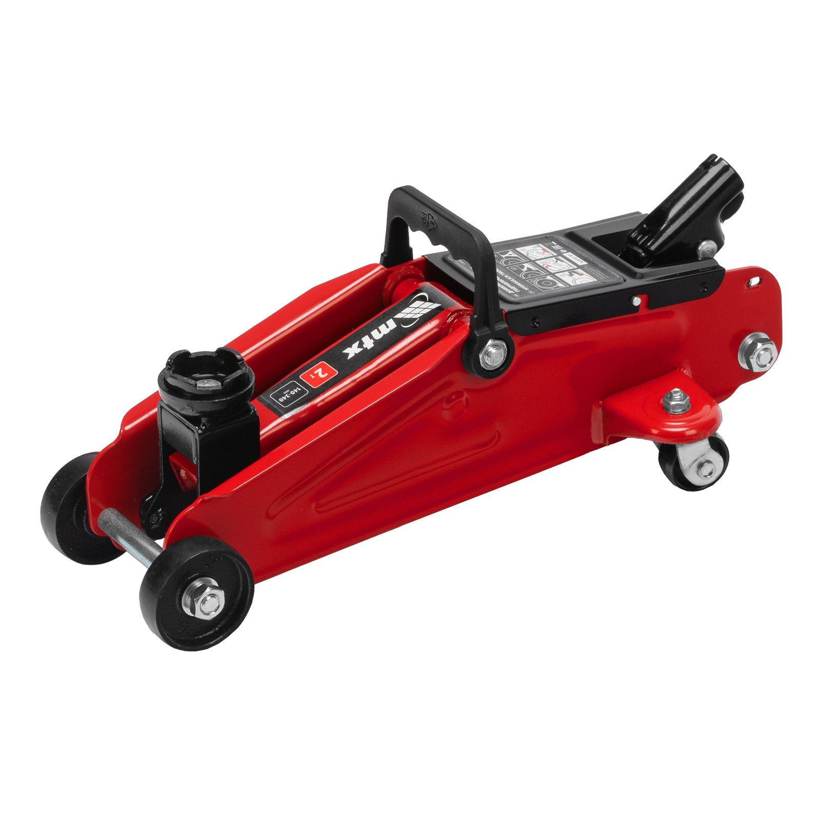 Гидравлический подкатной домкрат MTX 51080 с высотой подхвата 140 мм предназначен для подъема грузов массой до 2 т на высоту до 340 мм. Применяется для обслуживания автомобилей со стандартным клиренсом. Компактный домкрат подходит для самостоятельного использования автовладельцами.