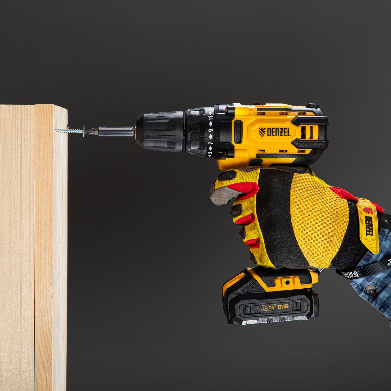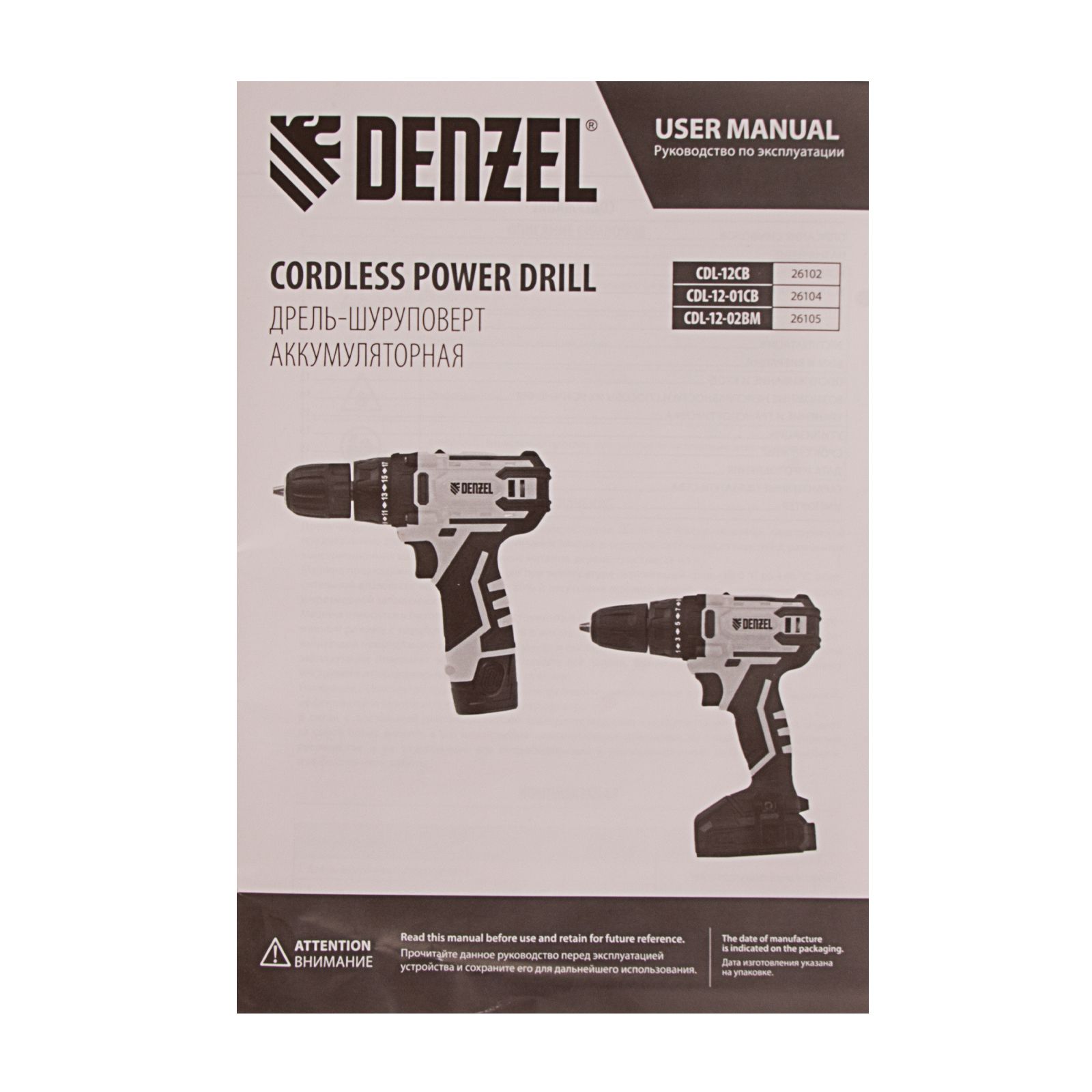 Аккумуляторная дрель-шуруповерт Denzel CDL-12-01CB 26104 с батареей Li-Ion 12 В предназначена для монтажа и демонтажа резьбовых соединений, сверления отверстий в металле (до 10 мм), древесине (до 16 мм), пластмассе и других материалах. Инструмент пригодится профессионалам и любителям на строительной площадке, дома или на даче.,Надежный литий-ионный аккумулятор без эффекта памяти обеспечивает долгий срок службы инструмента. Дрель не зависит от сети питания, что делает удобной работу на строительных объектах, на высоте и в отдаленных участках дома.