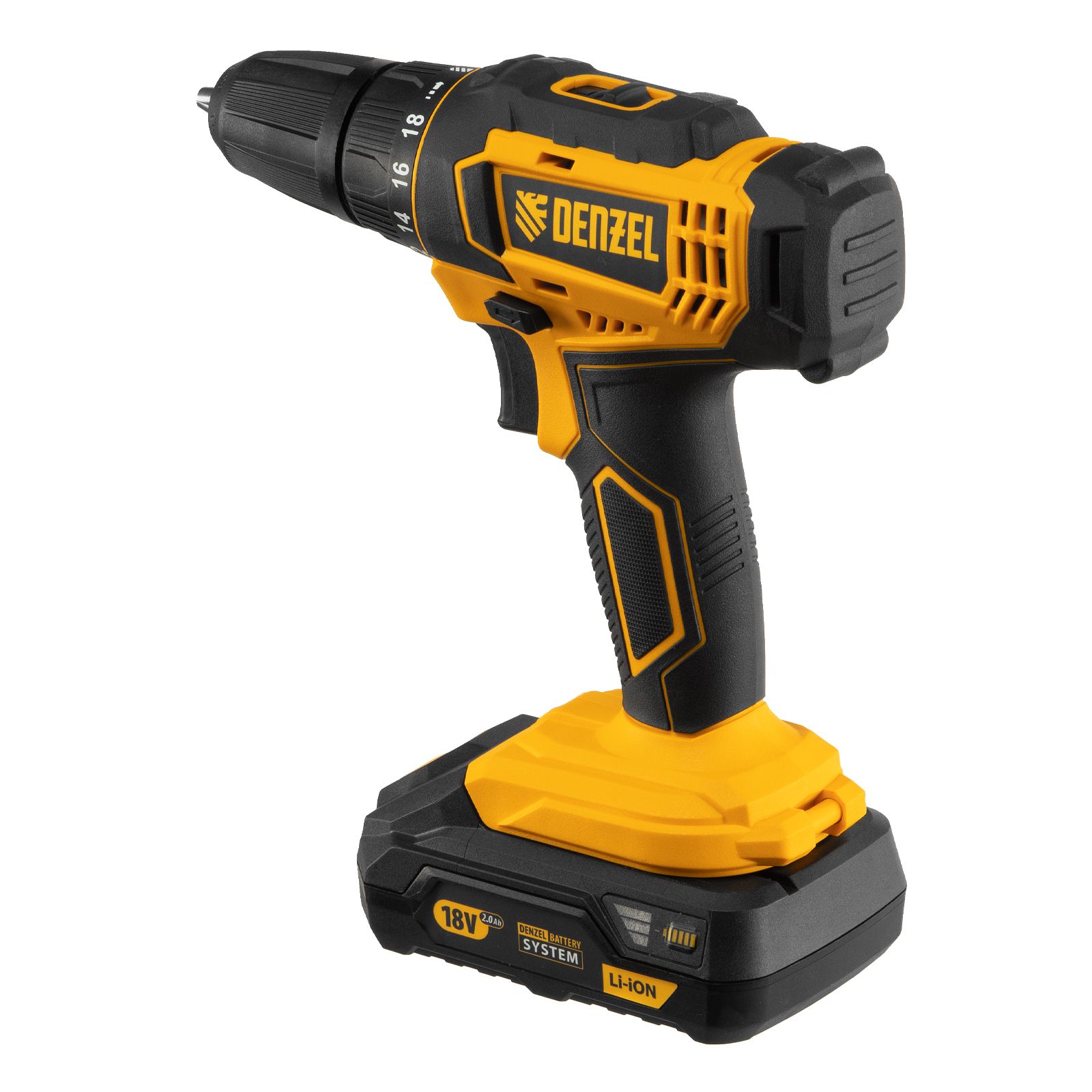 Аккумуляторная дрель-шуруповерт Denzel CDL-18-02BM 26116 с Li-Ion аккумуляторами 18 В предназначена для ввинчивания и вывинчивания винтов и шурупов, а также получения отверстий в различных конструкционных материалах: металле, древесине, пластмассе и т.п. Оптимальна для интенсивного использования как в быту, так и на строительных объектах, пригодится в процессе ремонта, при сборке мебели и т.д. Система защиты от перегрузки, перегрева, глубокой разрядки и нежелательного перезаряда обеспечивает долговечность инструмента и комфортную работу.