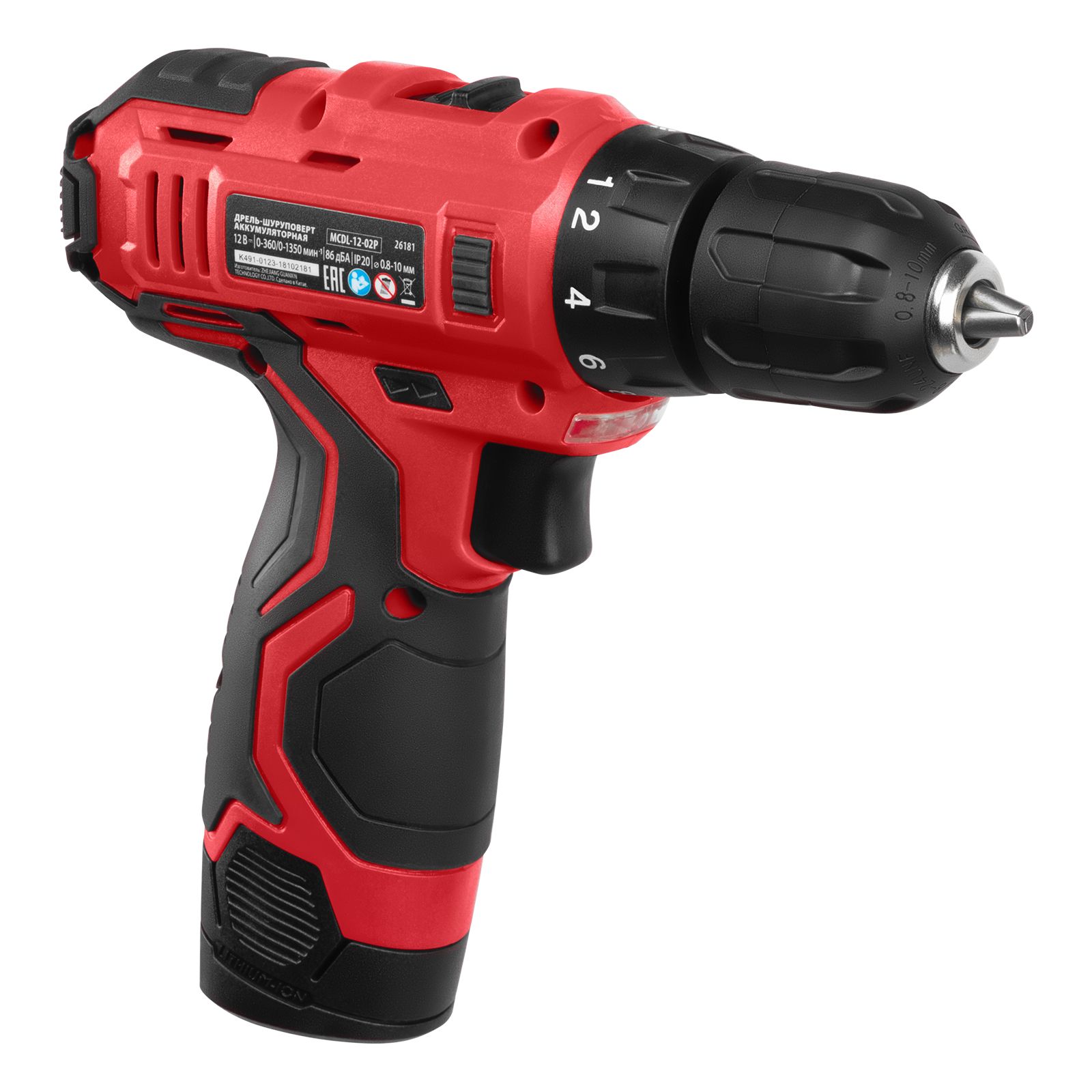 Аккумуляторная дрель-шуруповерт MTX MCDL-12-02P 26181 работает от аккумуляторной батареи Li-Ion 12 В емкостью 2 А·ч и развивает крутящий момент до 20 Н·м. Предназначена для закручивания и откручивания резьбового крепежа, а также сверления отверстий в металле (диаметром до 6 мм), древесине (до 20 мм), пластмассе и других материалах. В комплекте с инструментом идут сразу два аккумулятора, что позволит избежать перерывов в работе.