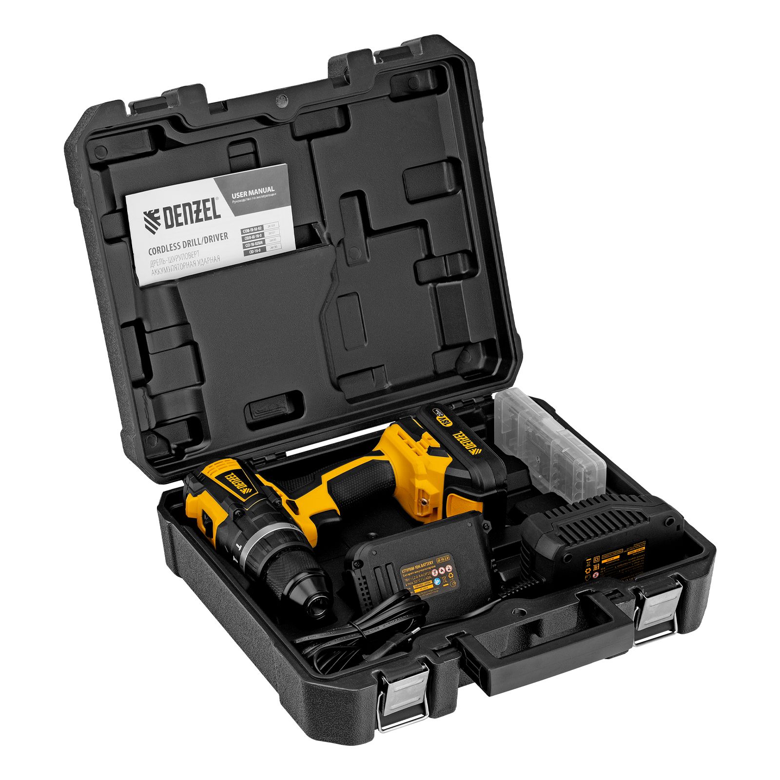 - Универсальность — аккумуляторы совместимы со всеми инструментами модельного ряда единой платформы Denzel Battery System 18V.