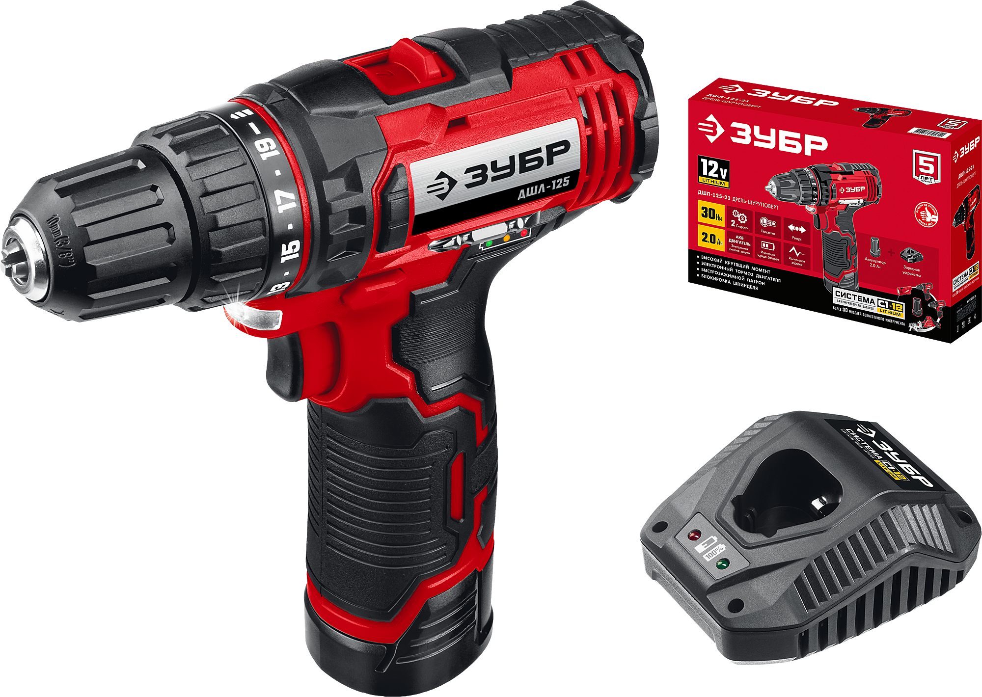 Дрель-шуруповерт ЗУБР 12В 1 АКБ 2Ач ДШЛ-125-21