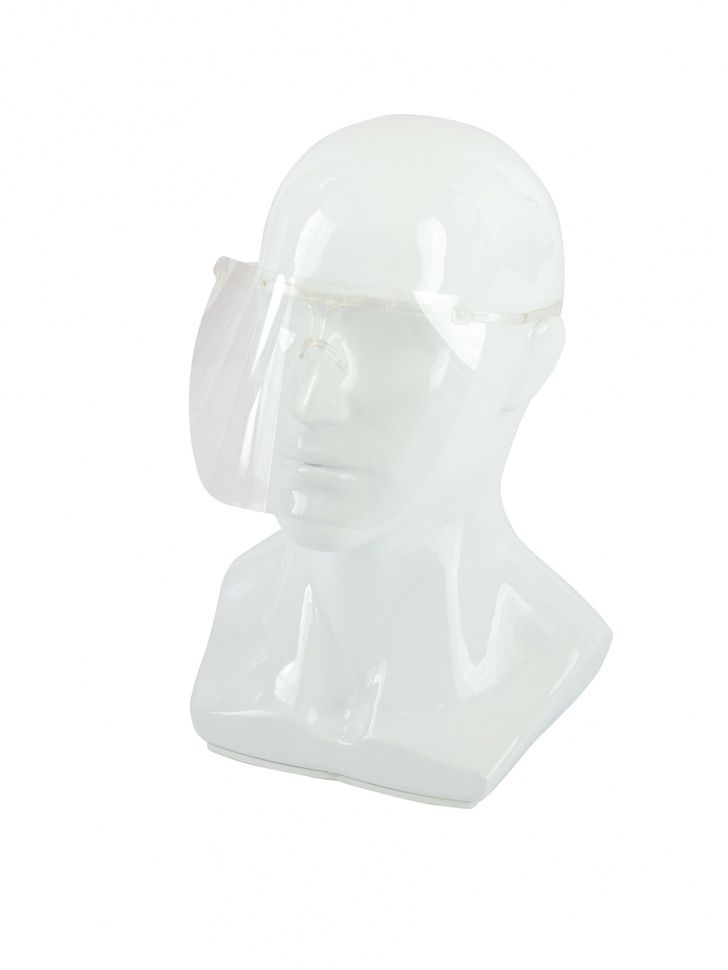 - Защитный экран фиксируется на переносице и за ушами как очки.