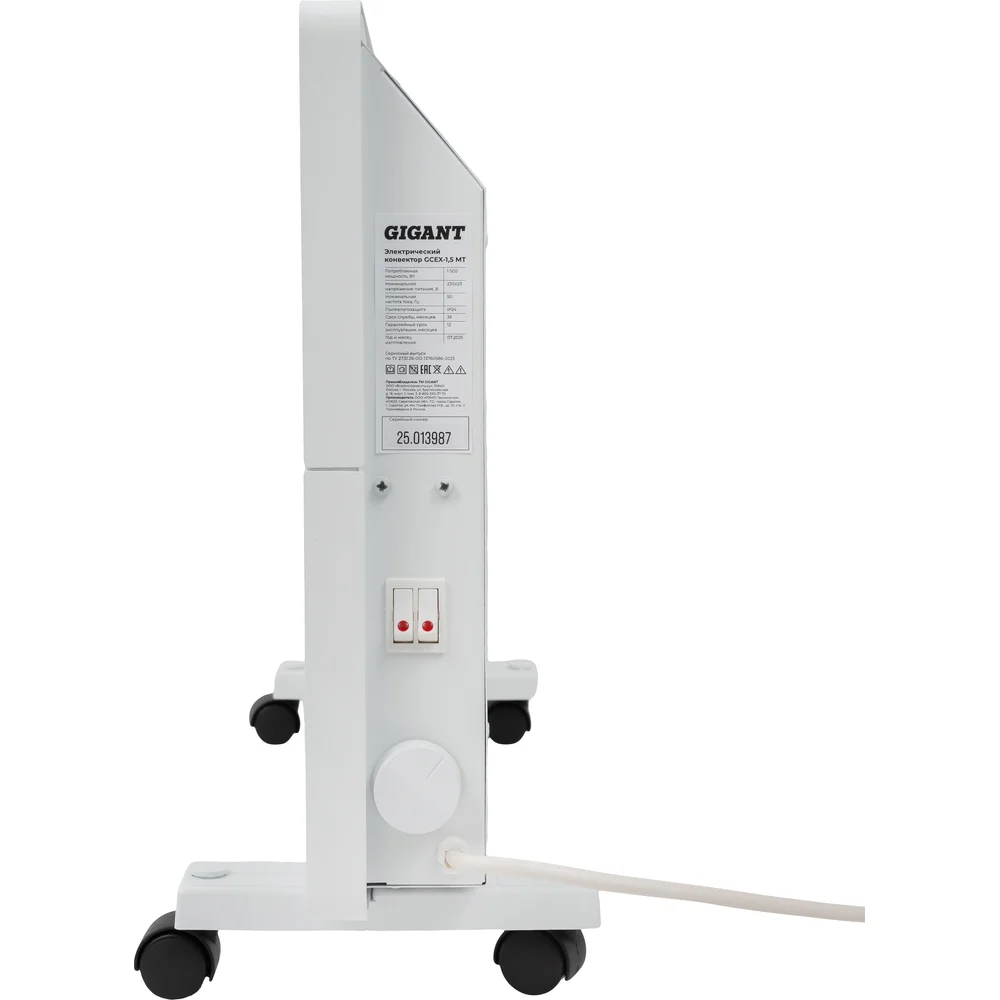 Электрический конвектор 1500 Вт Gigant GCEX-1,5 MT равномерно нагревает и ионизирует воздух в помещениях офисного и бытового назначения. Монолитный нагревательный элемент X-образной формы увеличивает температуру воздуха всего за 75 секунд. Многоуровневая система защиты: влагозащита IP24, родительский контроль, датчик защиты от опрокидывания и перегрева обеспечивают безопасную эксплуатацию прибора.