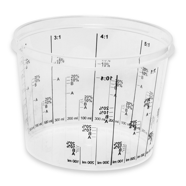 Пластиковые мерные ёмкости объемом 0.75 л для смешивания лакокрасочных материалов в различных соотношениях с отвердителями и разбавителями.