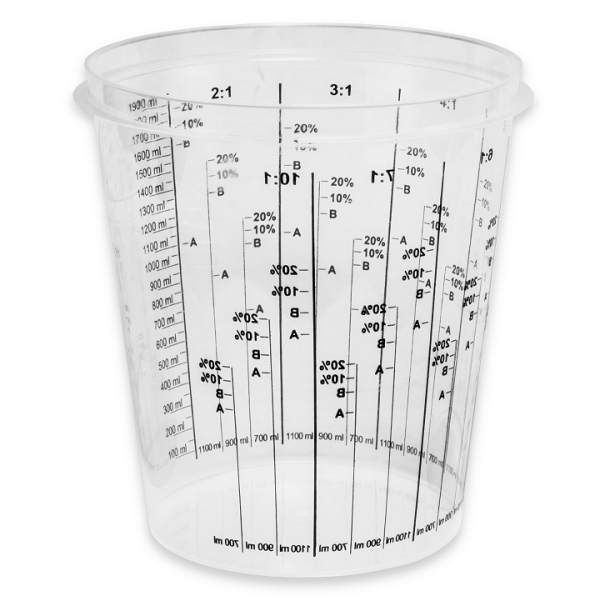 Пластиковые мерные ёмкости объемом 2.3 л для смешивания лакокрасочных материалов в различных соотношениях с отвердителями и разбавителями.