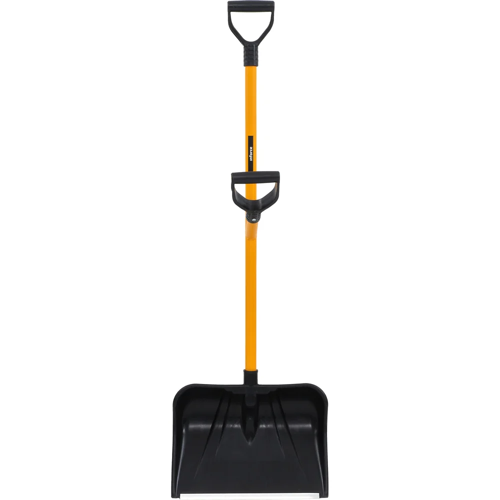 Эргономичная лопата с двумя V-образными ручками Inforce 445х330 мм 06-12-26 используется для расчистки территории от снега. Обладает рядом преимуществ: Имеет максимальную прочность в своем классе за счет увеличенного количества ребер жесткости и толщины стенок ковша; Благодаря специальному композитному составу обладают повышенной прочностью; Эргономичная конструкция лопат повышает скорость уборки снега и снижает трудоемкость работы; Ковш армирован алюминиевым профилем шириной 18 мм, предназначенным для сколки льда, уборки плотного слежавшегося снега; Комплектуется дополнительной ручкой, надежно установленной под оптимальным углом к прочному стальному черенку; Ребра жесткости на ковше снеговой лопаты расположены под углом к черенку, что придает рабочей части дополнительную жесткость.
