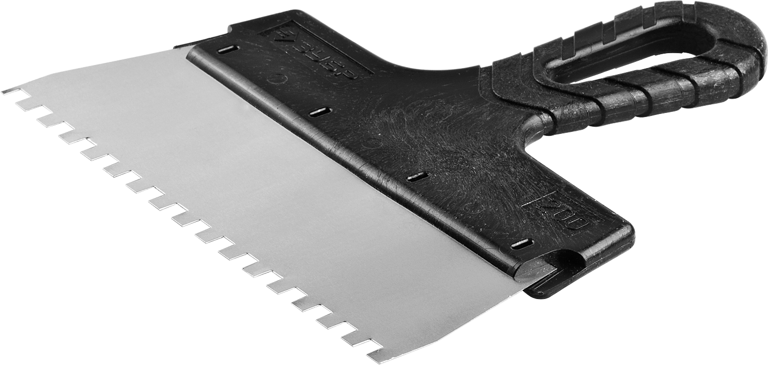 Фасадный нержавеющий шпатель ЗУБР Нерж-т 200мм зуб 6х6мм зубчатый пластиковая ручка 10078-20-06