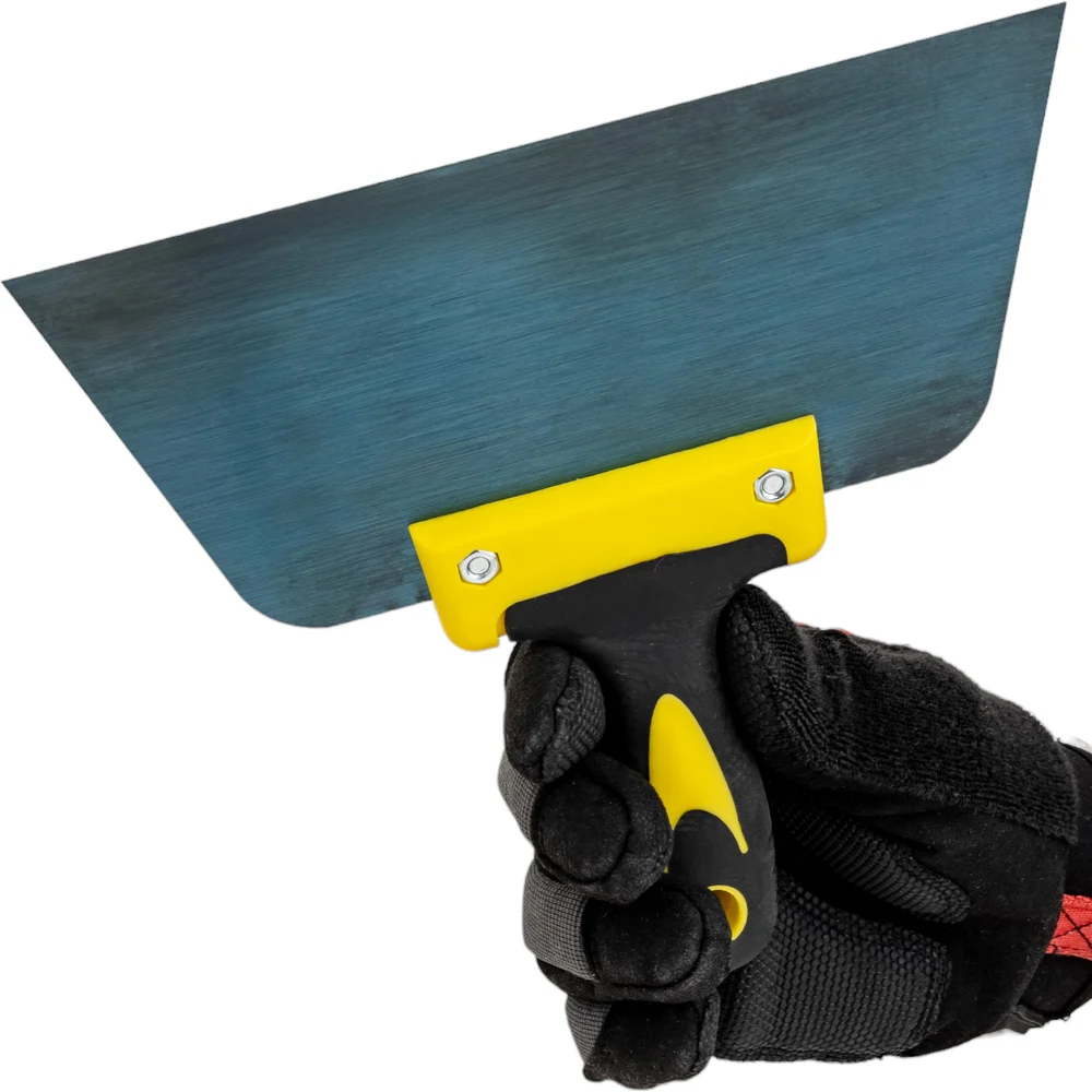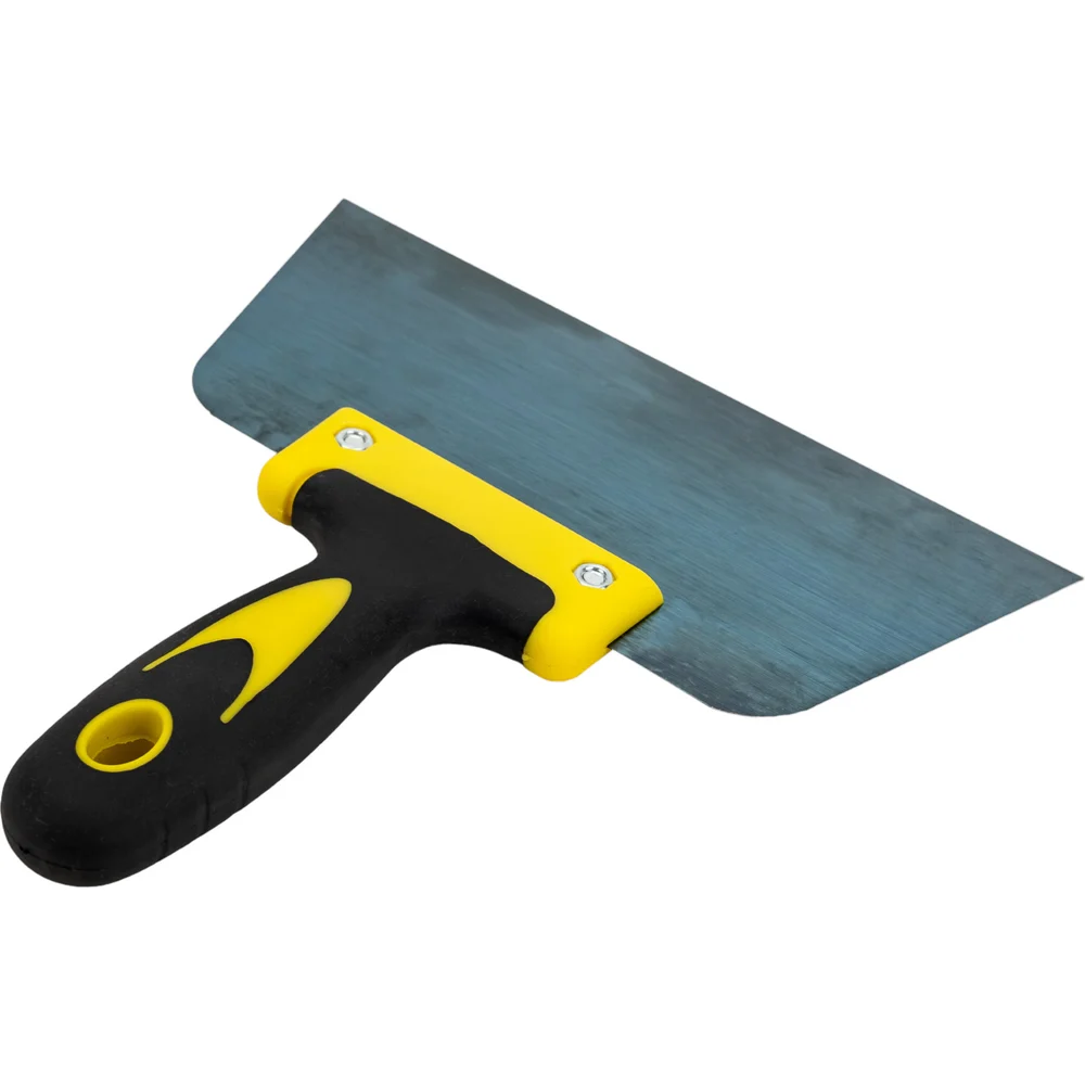 Фасадный шпатель Gigant нержавеющая сталь, 200 мм, двухкомпонентная ручка GFS-200 предназначен для нанесения, выравнивания и сглаживания отделочных составов, а также проведения других ремонтно-отделочных работ. Инструмент оптимально подходит для заглаживания зашпаклеванных швов.