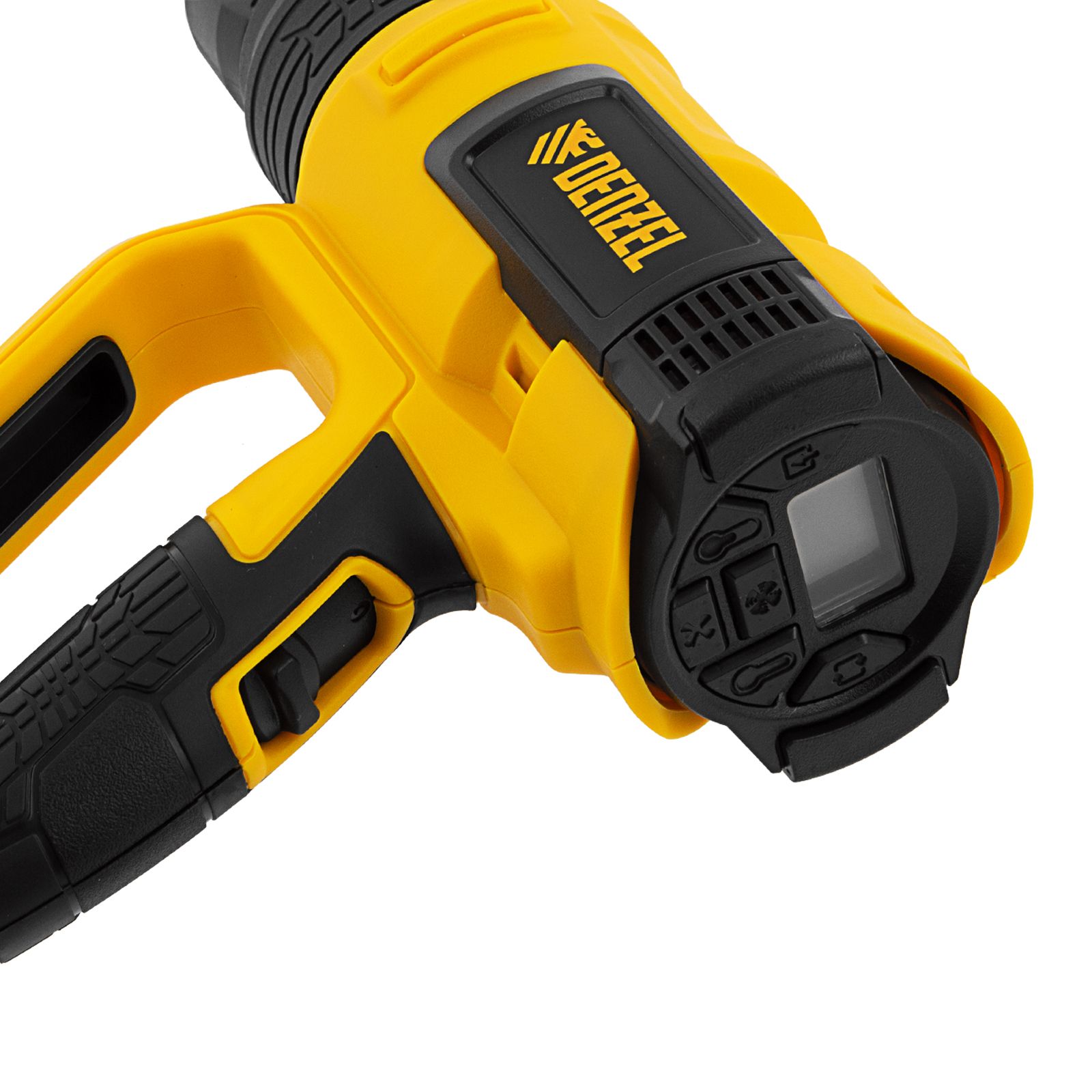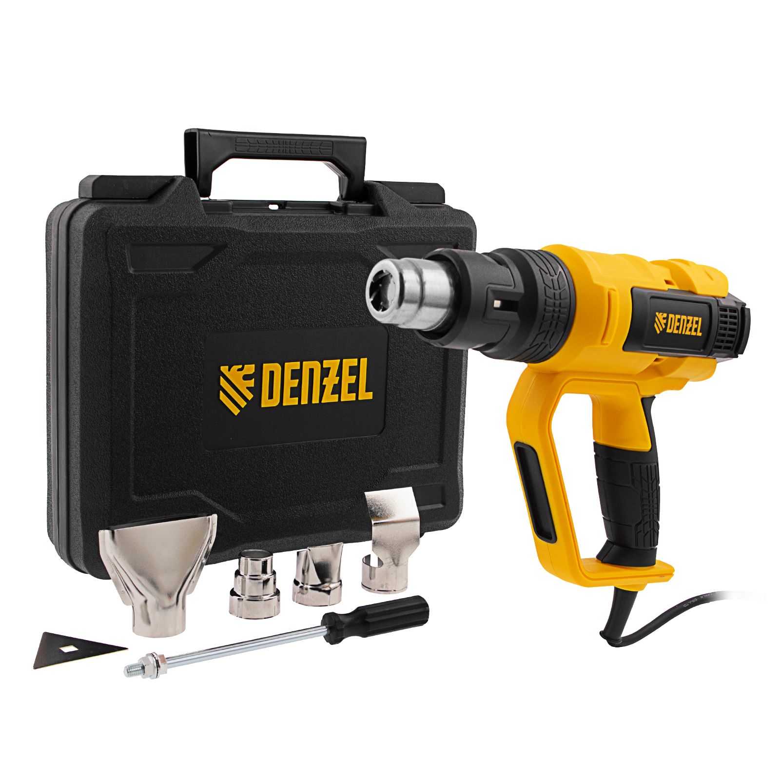Профессиональный технический фен Denzel HG-2000E 28007 мощностью 2000 Вт, с 2 режимами и LCD дисплеем, предназначен для нагрева и сушки различных соединений и поверхностей. Применяется при снятии лакокрасочных покрытий, удалении старого линолеума и плитки, пайке металла и сварке пластика, разморозке труб, а также в процессе других задач в быту и на строительных объектах.,Высокая мощность двигателя 2 кВт обеспечивает производительность 250-500 л/мин. Максимальная рабочая температура составляет 650 ℃. Надежный и долговечный нагревательный элемент с керамическим каркасом устойчив к продолжительной эксплуатации.