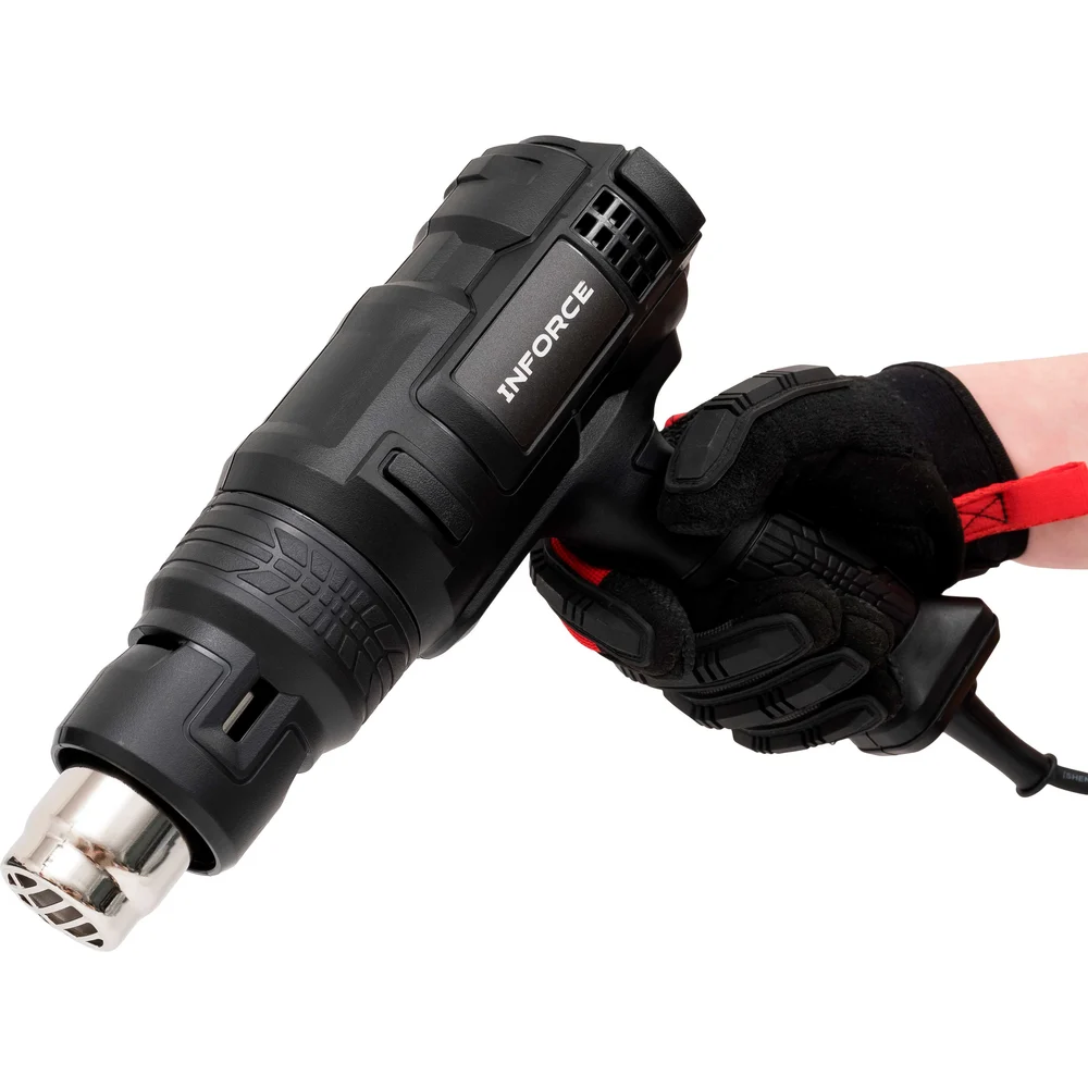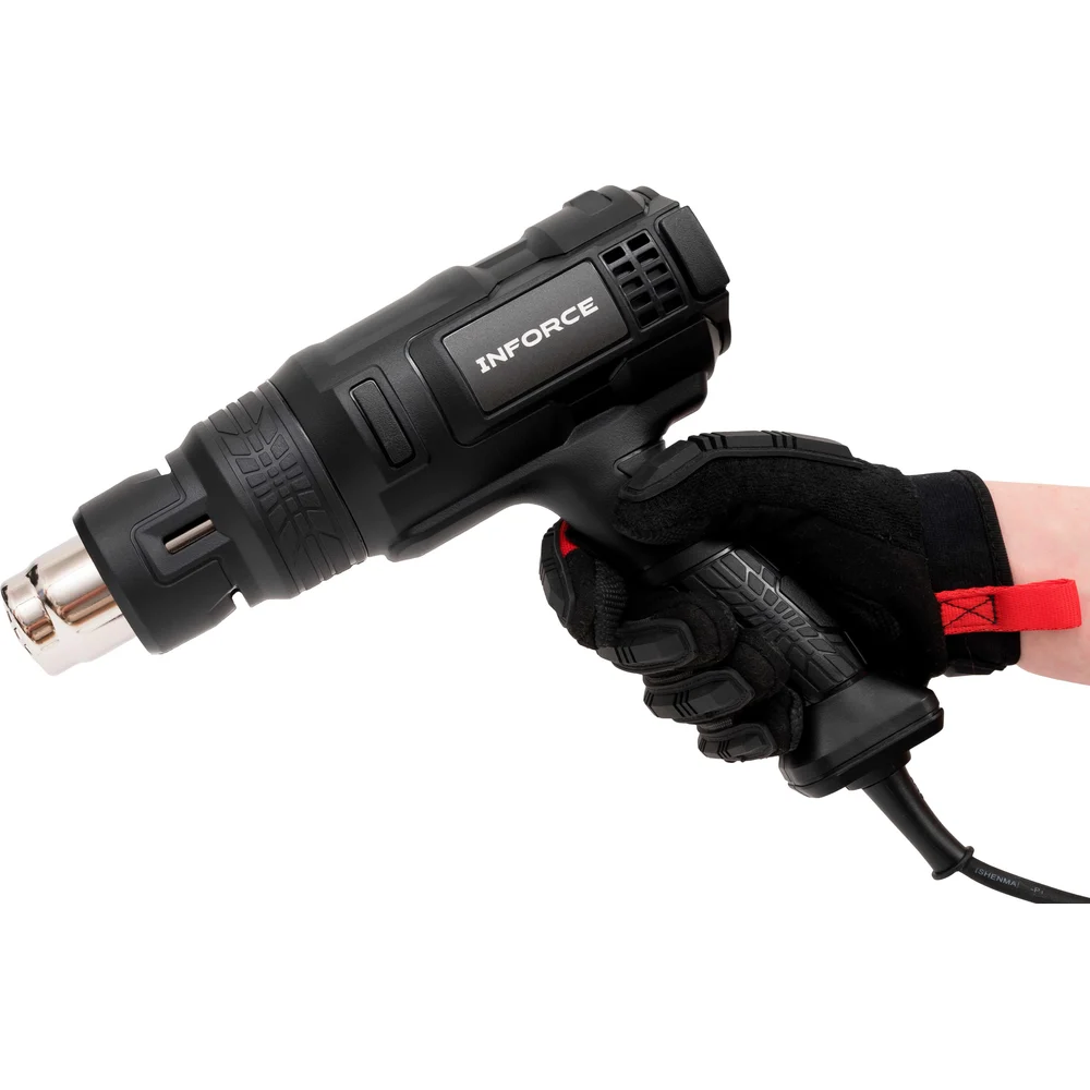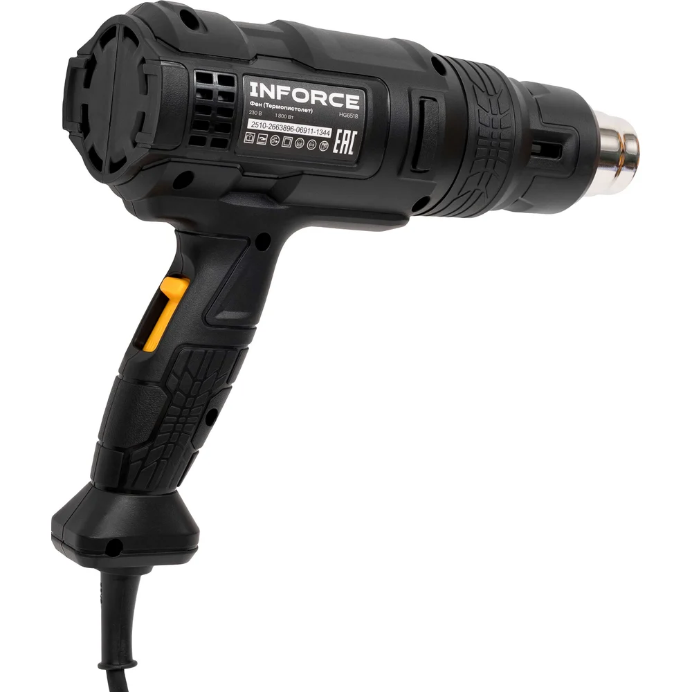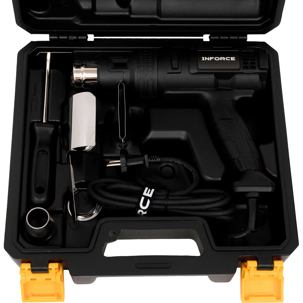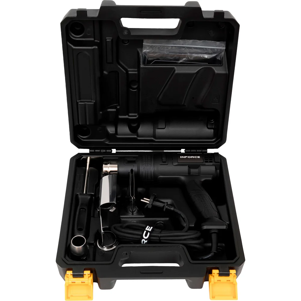 Фен Inforce HG6518 - это термопистолет с тремя температурными режимами для термоусадки, удаления краски и сушки. Компактный и легкий. Поставляется в ударопрочном пластиковом кейсе для транспортировки и хранения насадок.