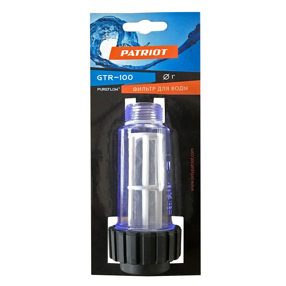 Фильтр тонкой очистки PATRIOT GTR 100 для моек высокого давления, диаметром 1 дюйм. Он очищает поступающую воду от твердых примесей и продлевает срок службы инструмента. Прозрачный корпус позволяет отслеживать степень загрязнения фильтра.