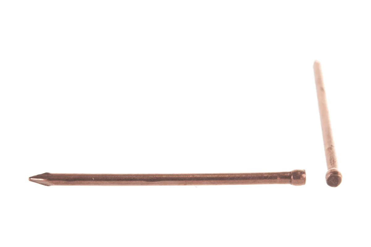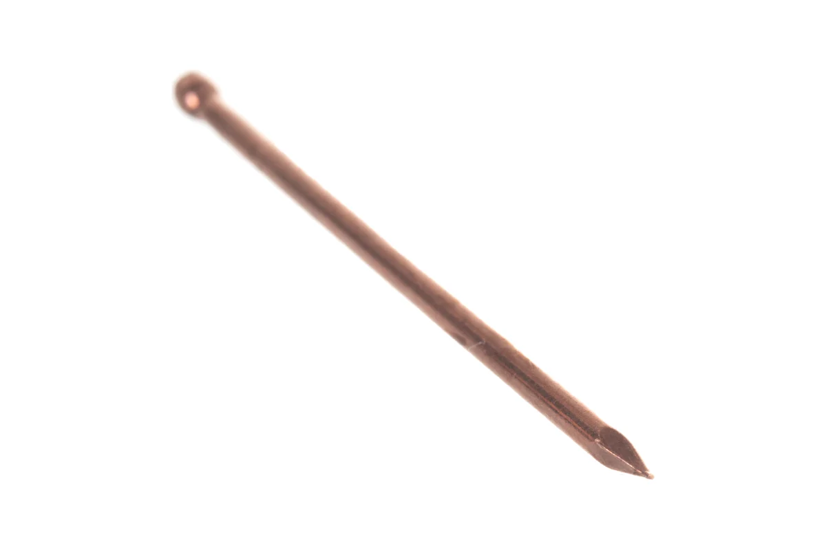 - Омедненное покрытие: обеспечивает защиту от коррозии, увеличивая срок службы, а также позволяет выбрать гвозди в гармонии с отделочными материалами;