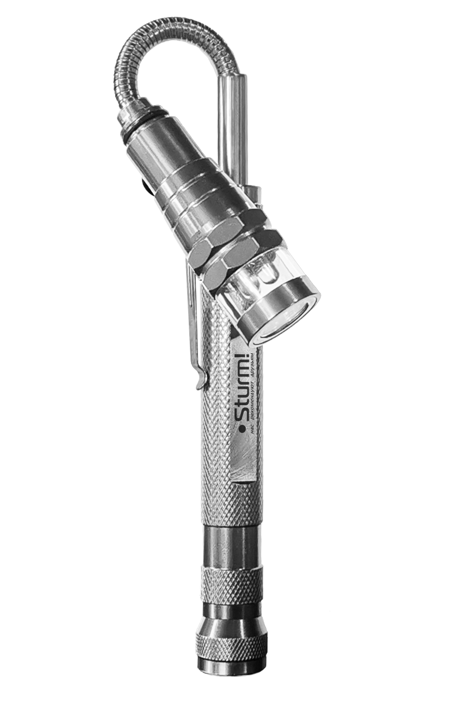 Прозрачная вставка на рефлекторе для периферийного света обеспечивает освещение в два раза большего объёма пространства, а так же позволяет фонарю продолжать светить даже когда он находится вплотную к поверхности, усиленные сверхяркие светодиоды эффективно освещают темные места, мощный торцевой магнит плотно фиксирует фонарь на металлической основе, гибкий телескопический наконечник позволяет точно направить освещение, мощный магнит на рефлеторе дает возможность поднимать металлические детали из труднодоступных мест