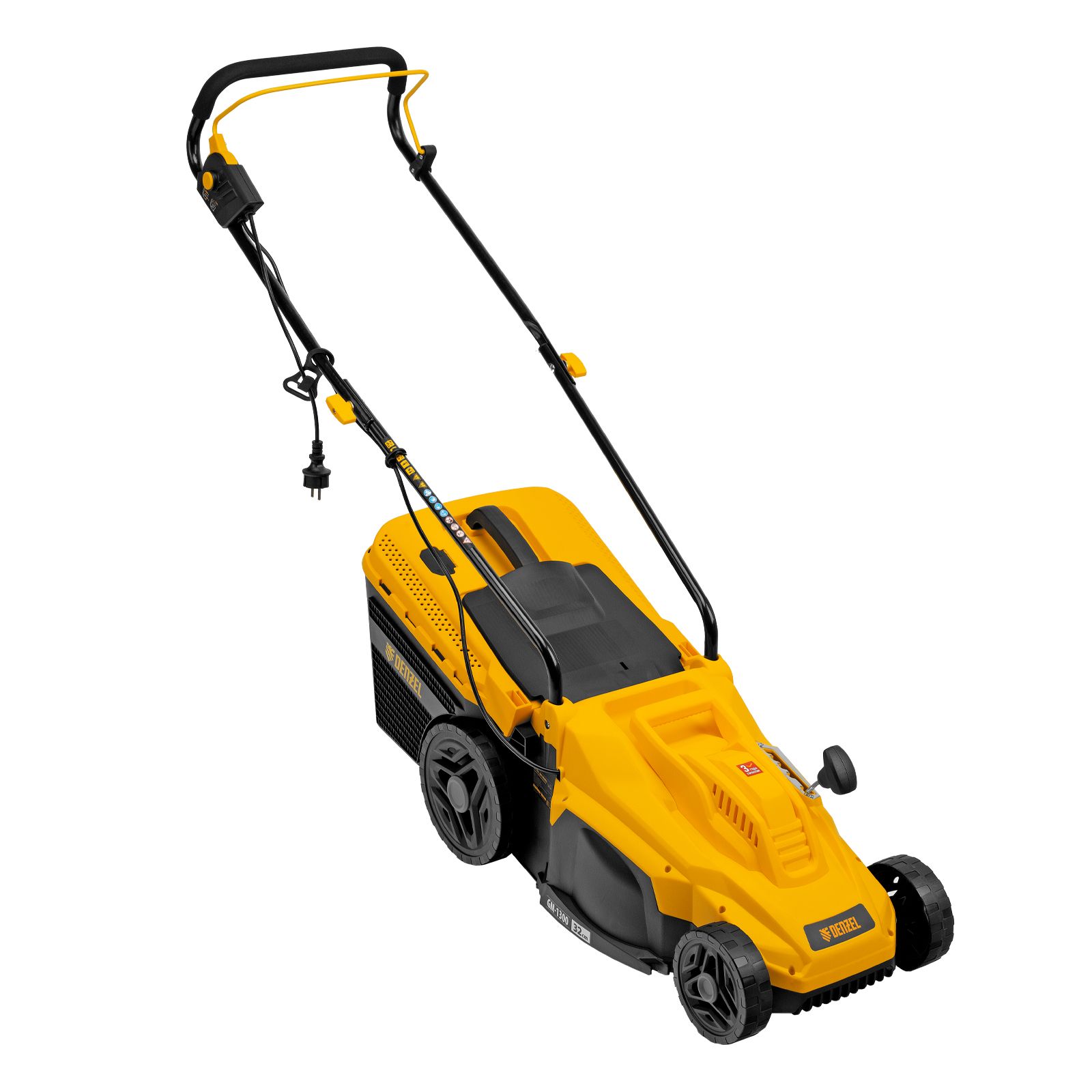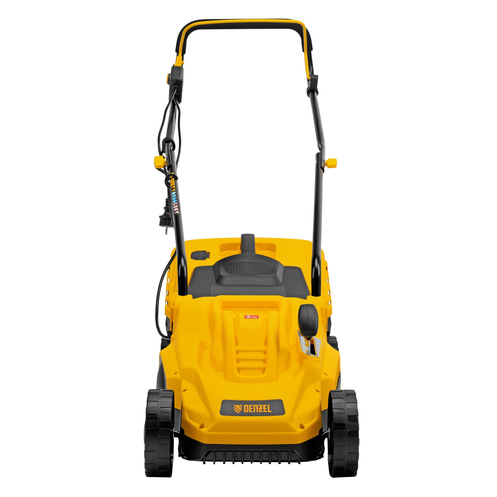 Газонокосилка электрическая Denzel GM-1300 96627 мощностью 1300 Вт, с травосборником объемом 35 л и 5 уровнями скашивания, обеспечивает ширину прохода 32 см и предназначена для стрижки газонов, кошения травы в саду и на небольшом приусадебном участке. Предусмотрена 5-ступенчатая регулировка высоты скашивания (от 30 до 70 мм) в зависимости от типа газона. Газонокосилка проста в управлении и обслуживании, с ней легко справится неопытный пользователь.