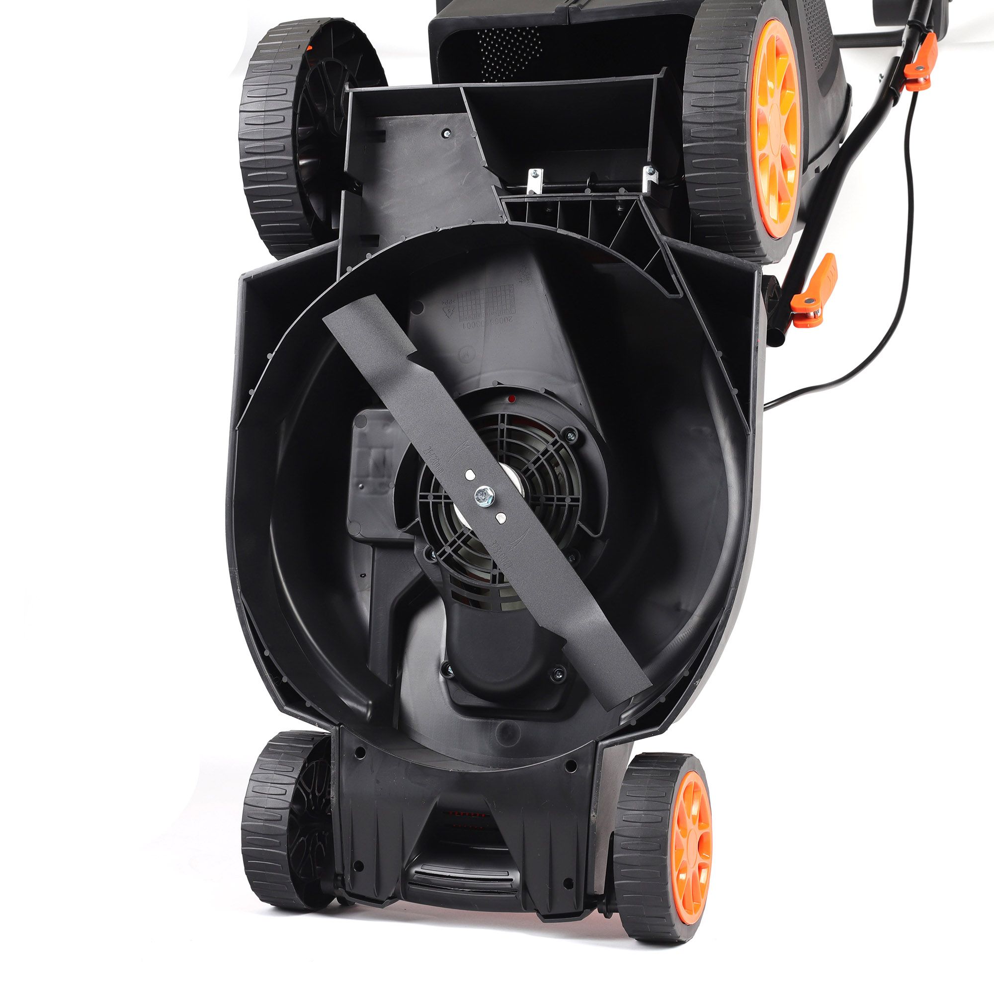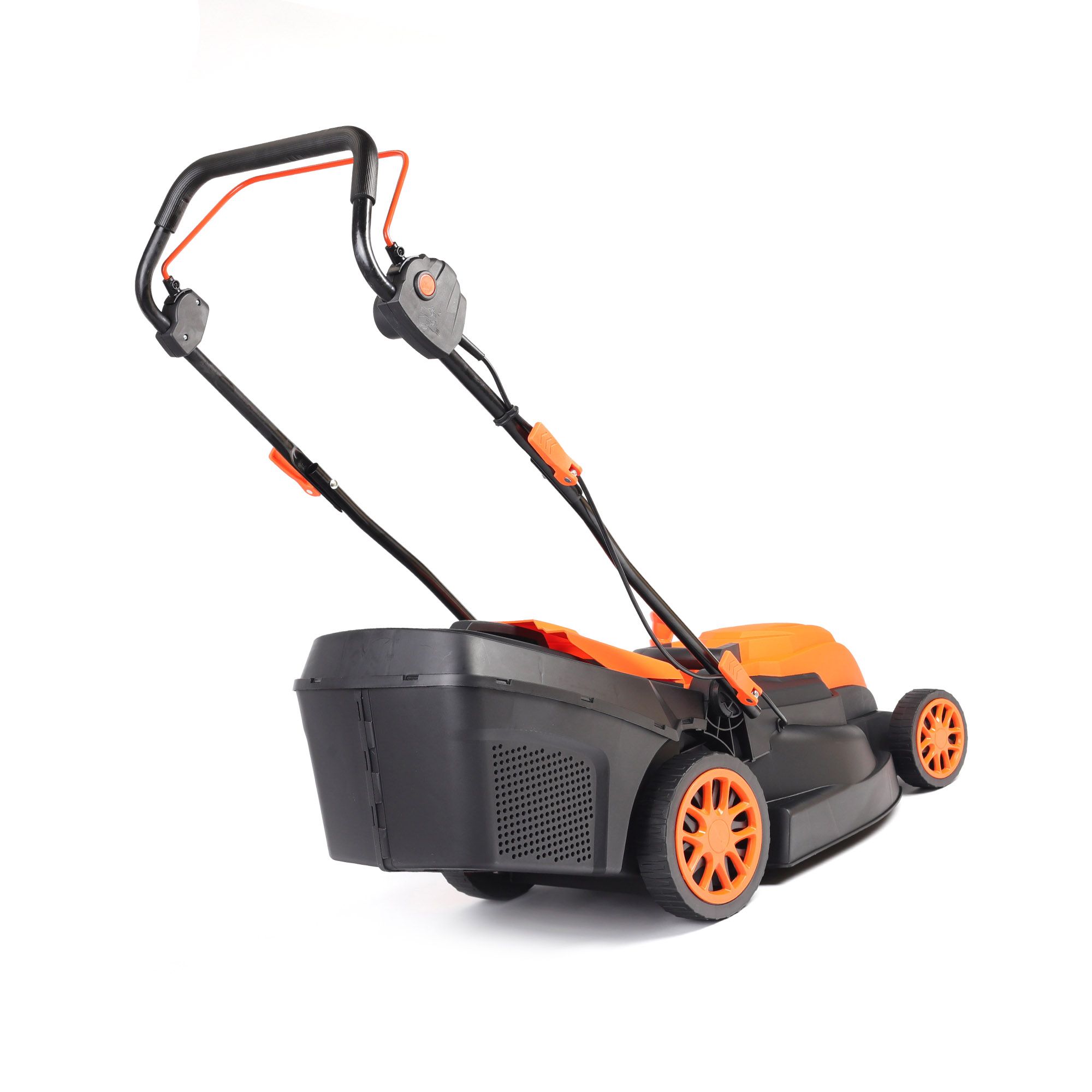 Складная рукоятка, съёмный травосборник и компактный размер позволяют легко транспортировать и хранить газонокосилку.