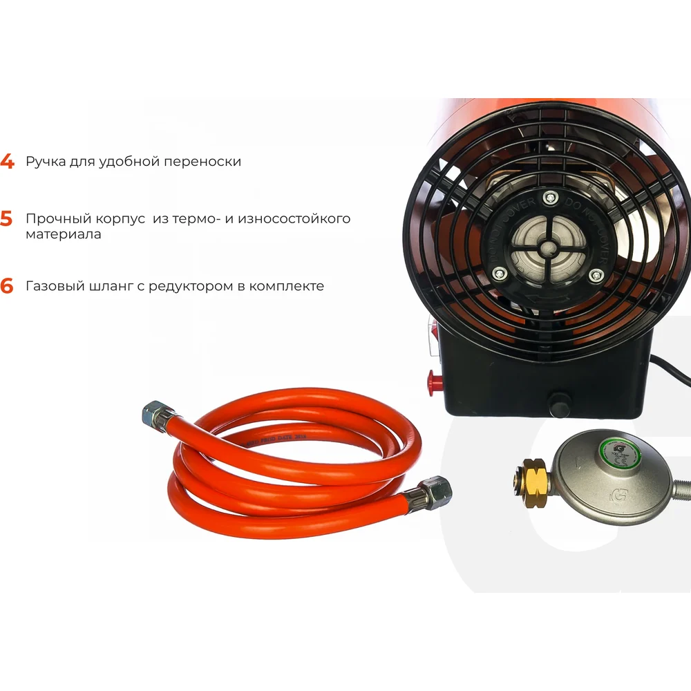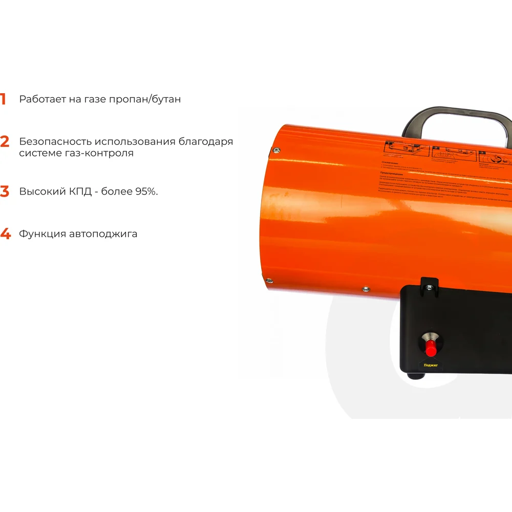 Газовая тепловая пушка Gigant GH15F предназначена для эффективного обогрева хорошо проветриваемых помещений и отличается компактностью при высокой производительности. Это мощное оборудование обеспечивает тепловую мощность на уровне 15 кВт, что является достаточным для обогрева помещения площадью примерно 150 м2. ВНИМАНИЕ! Предельное время работы газовой пушки без перерыва - 8-10 часов. По истечении этого времени необходимо проверить уровень топлива и вентиляцию помещения. Основной принцип работы пушки заключается в подключении к базовому баллону при помощи комплектного шланга длиной 1,5 м и редуктора. Эта система обеспечивает стабильное поступление газа, необходимого для поддержания высокой тепловой производительности. Корпус устройства выполнен из термо- и износостойкого материала, что обеспечивает надежность и долгий срок службы оборудования. Модель Gigant GH15F разработана с учетом простоты использования – она не требует специальной сборки и монтажа. Кнопка включения оборудования оснащена защитой от пыли, что повышает надежность работы устройства и продлевает его срок службы. Кроме того, предусмотрена удобная ручка для перемещения пушки, что обеспечивает мобильность и легкость в управлении обогревом в различных помещениях. Таким образом, газовая тепловая пушка Gigant GH15F представляет собой эффективное и удобное решение для обеспечения тепла в различных пространствах. Кроме своей основной функции обогрева, газовая тепловая пушка Gigant GH15F также проявляет универсальность в использовании, включая возможность применения при монтаже натяжных потолков. Это делает ее идеальным инструментом не только для поддержания комфортной температуры в хорошо проветриваемых помещениях, но и для обеспечения оптимальных условий в процессе установки натяжных потолков. Благодаря компактному дизайну и легкости в управлении, данная модель газовой пушки обеспечивает эффективное распределение тепла, что особенно важно при работе с материалами потолочных конструкций. Возможность регулировки мощности до 15 кВт позволяет точно настраивать температурные условия в соответствии с требованиями монтажа. Корпус устройства выполнен из термо- и износостойкого материала. Модель не требует специальной сборки и монтажа. Кнопка включения имеет защиту от пыли. Предусмотрена ручка для удобного перемещения пушки. Gigant – собственная торговая марка компании ВсеИнструменты.ру, разработанная специально для требовательных мастеров. Продукция представлена профессиональными и бытовыми инструментами, имеет доступную цену и высокое качество. При изготовлении товаров Gigant используется современное оборудование и прочные материалы. Производство осуществляется на современных предприятиях России и Азии. Тестирование товаров осуществляется в два этапа, каждая партия инструментов проходит проверку на соответствие стандартам и заявленным техническим характеристикам. Это является залогом качества и надежности готового продукта. Продукция представлена широкой линейкой инструментов. У нас можно приобрести ручной инструмент, строительный, садовый, сантехнический, климатический, крепежный, автогаражный, а также станки, расходные материалы и многое другое.