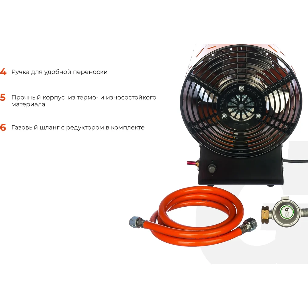 Газовая тепловая пушка Gigant GH50F предназначена для эффективного обогрева хорошо проветриваемых помещений и отличается компактностью при высокой производительности. Это мощное оборудование обеспечивает тепловую мощность на уровне 50 кВт, что является достаточным для обогрева помещения площадью примерно 500 м2. ВНИМАНИЕ! Предельное время работы газовой пушки без перерыва - 8-10 часов. По истечении этого времени необходимо проверить уровень топлива и вентиляцию помещения. Основной принцип работы пушки заключается в подключении к базовому баллону при помощи комплектного шланга длиной 1,5 м и редуктора. Эта система обеспечивает стабильное поступление газа, необходимого для поддержания высокой тепловой производительности. Корпус устройства выполнен из термо- и износостойкого материала, что обеспечивает надежность и долгий срок службы оборудования. Модель Gigant GH50F разработана с учетом простоты использования – она не требует специальной сборки и монтажа. Кнопка включения оборудования оснащена защитой от пыли, что повышает надежность работы устройства и продлевает его срок службы. Кроме того, предусмотрена удобная ручка для перемещения пушки, что обеспечивает мобильность и легкость в управлении обогревом в различных помещениях. Таким образом, газовая тепловая пушка Gigant GH50F представляет собой эффективное и удобное решение для обеспечения тепла в различных пространствах. Кроме своей основной функции обогрева, газовая тепловая пушка Gigant GH50F также проявляет универсальность в использовании, включая возможность применения при монтаже натяжных потолков. Это делает ее идеальным инструментом не только для поддержания комфортной температуры в хорошо проветриваемых помещениях, но и для обеспечения оптимальных условий в процессе установки натяжных потолков. Благодаря компактному дизайну и легкости в управлении, данная модель газовой пушки обеспечивает эффективное распределение тепла, что особенно важно при работе с материалами потолочных конструкций. Возможность регулировки мощности до 50 кВт позволяет точно настраивать температурные условия в соответствии с требованиями монтажа. Корпус устройства выполнен из термо- и износостойкого материала. Модель не требует специальной сборки и монтажа. Кнопка включения имеет защиту от пыли. Предусмотрена ручка для удобного перемещения пушки. Gigant – собственная торговая марка компании ВсеИнструменты.ру, разработанная специально для требовательных мастеров. Продукция представлена профессиональными и бытовыми инструментами, имеет доступную цену и высокое качество. При изготовлении товаров Gigant используется современное оборудование и прочные материалы. Производство осуществляется на современных предприятиях России и Азии. Тестирование товаров осуществляется в два этапа, каждая партия инструментов проходит проверку на соответствие стандартам и заявленным техническим характеристикам. Это является залогом качества и надежности готового продукта. Продукция представлена широкой линейкой инструментов. У нас можно приобрести ручной инструмент, строительный, садовый, сантехнический, климатический, крепежный, автогаражный, а также станки, расходные материалы и многое другое.