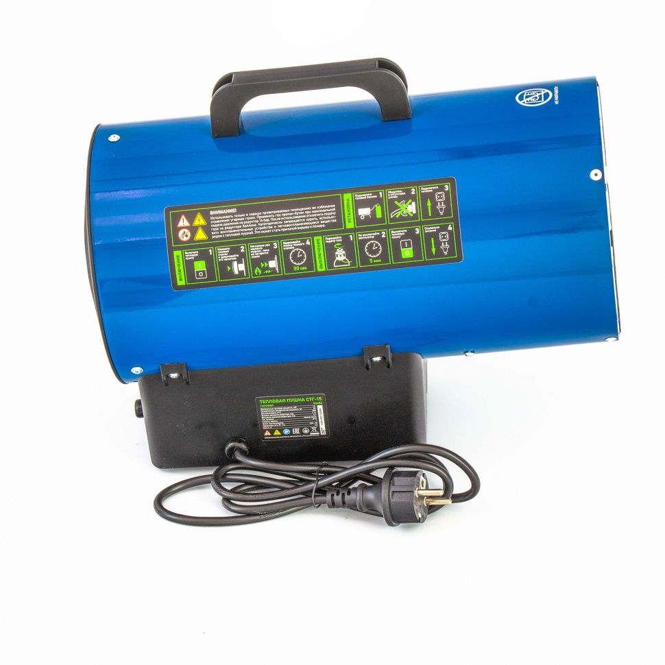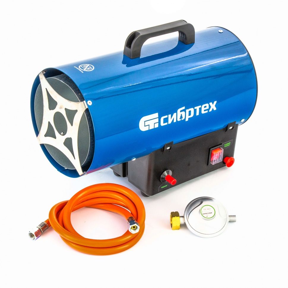 Газовая тепловая пушка - 1 штРучка - 1 штШланг газовый - 1 штРедуктор - 1 штХомут - 2 штКомплект крепежа - 1 штРуководство по эксплуатации с гарантийным талоном - 1 шт