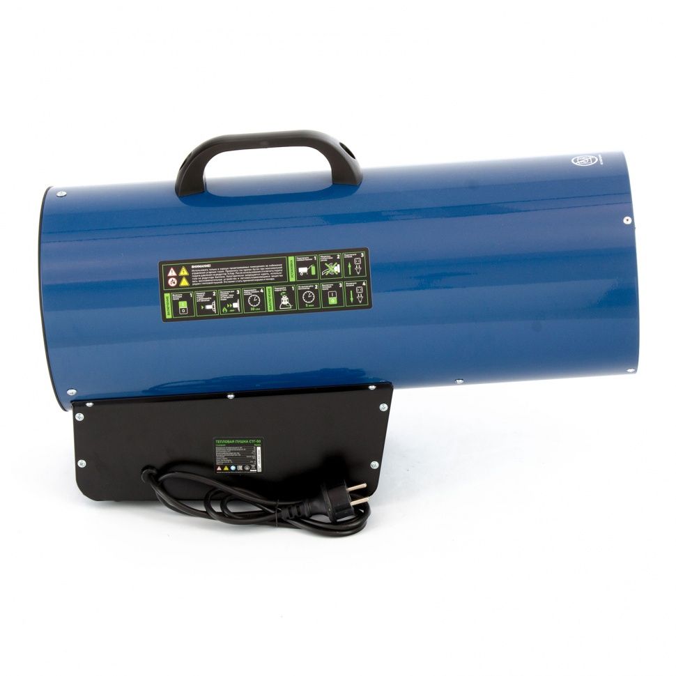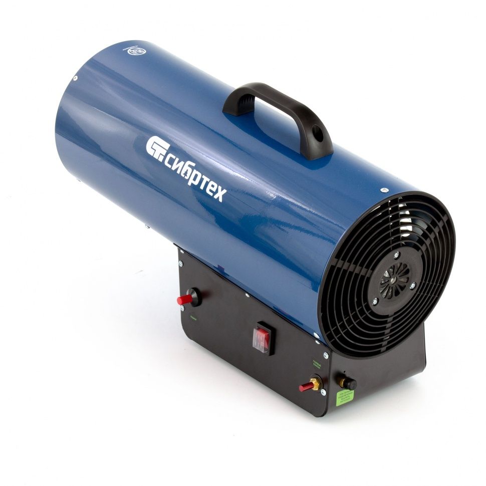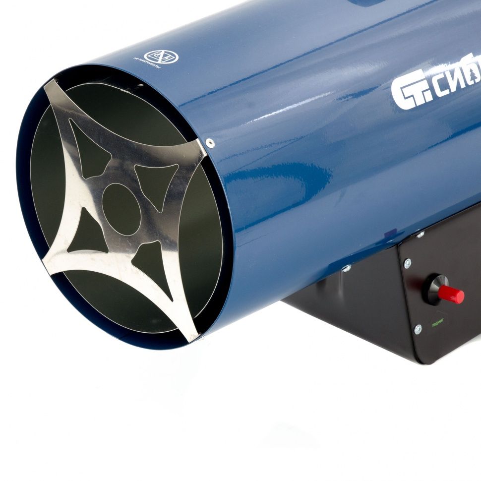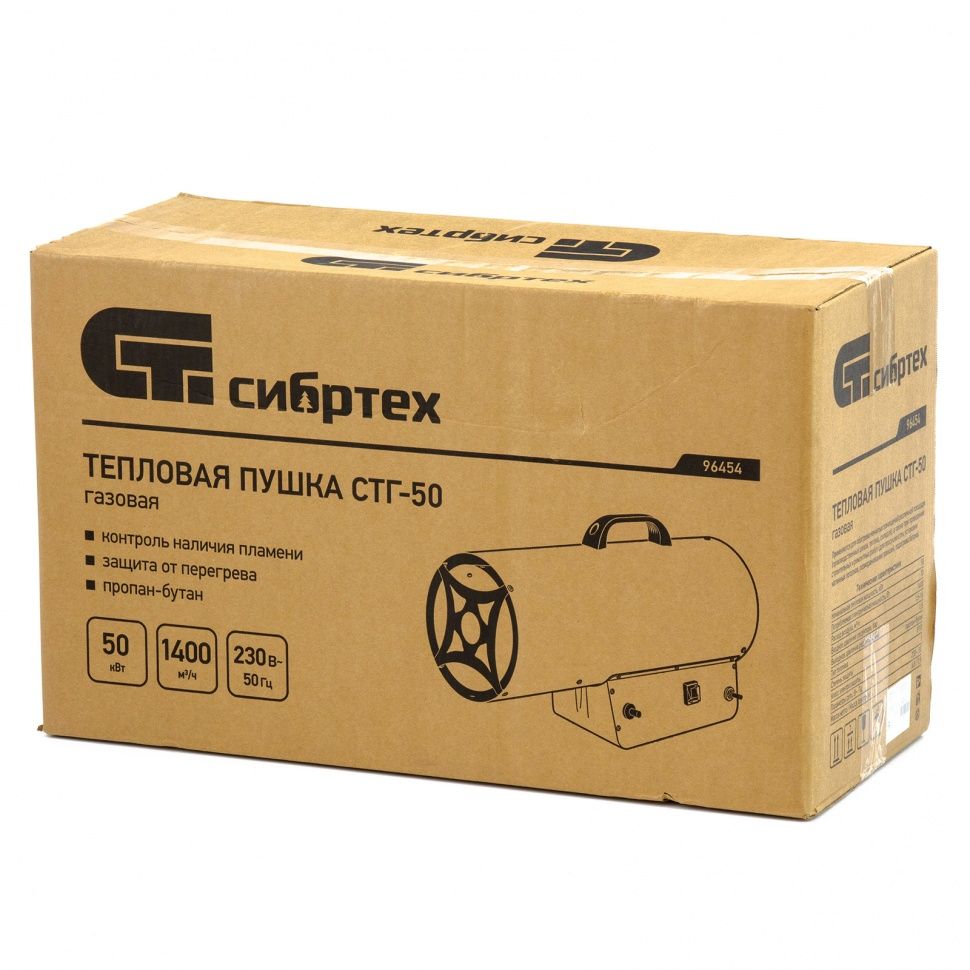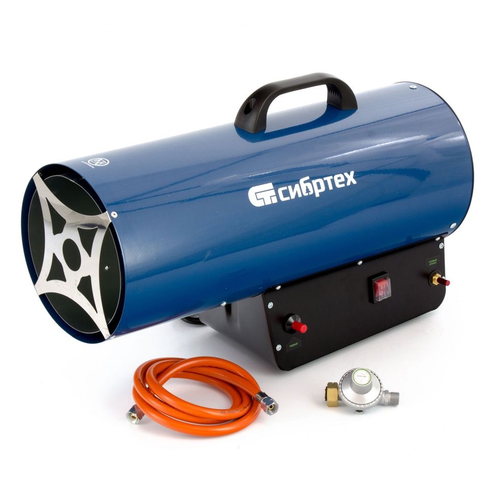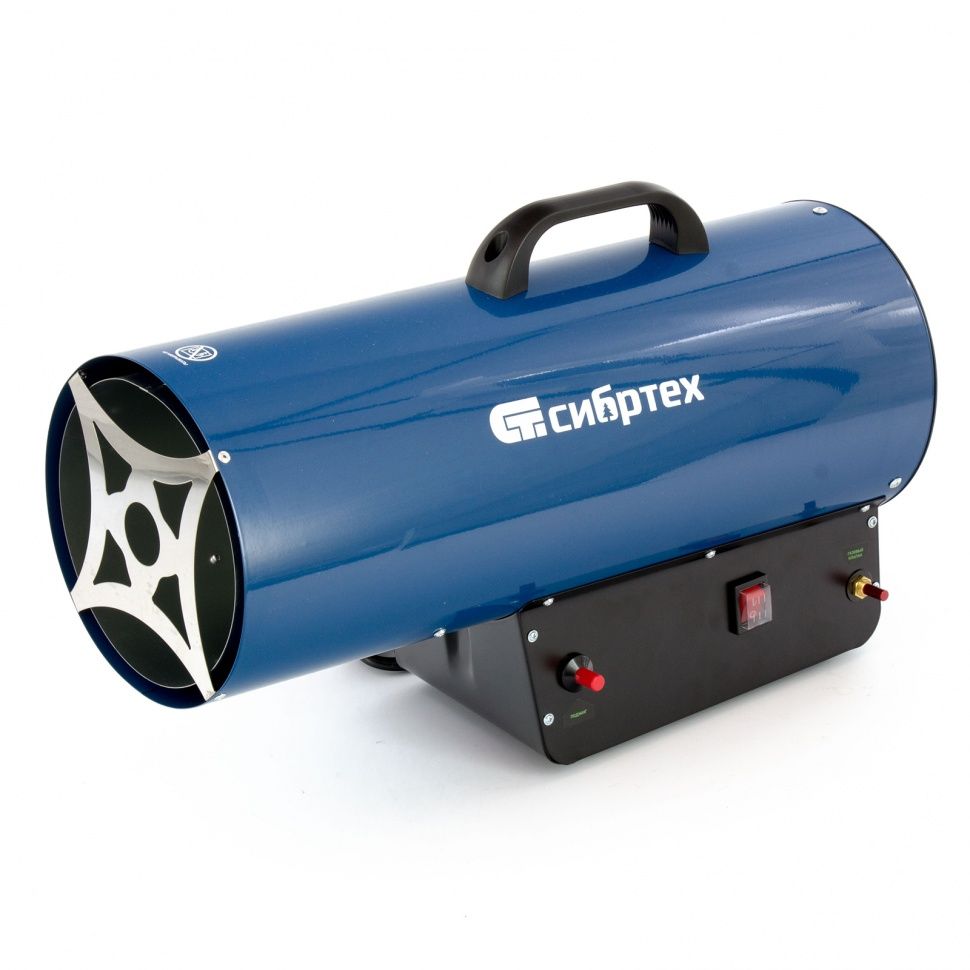 Газовая тепловая пушка Сибртех СТГ-50 96454, работающая на смеси пропан-бутан, имеет тепловую мощность 50 кВт и генерирует воздушный поток объемом 1400 м3/ч. Подходит для обогрева цеха, строительного объекта, склада и других нежилых помещений объемом до 500 м2. Может использоваться также для точечного обогрева: размораживания земли под траншеи, просушки поверхностей и т.д.