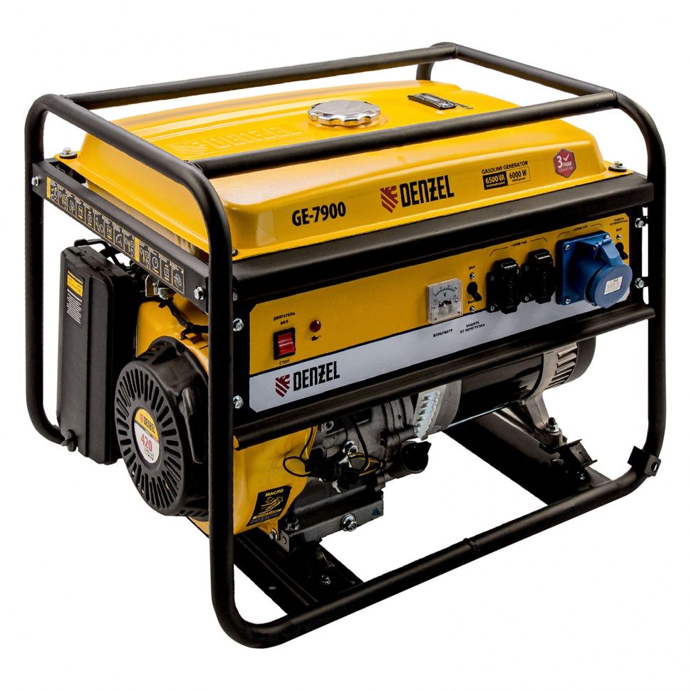 Генератор Denzel GE 7900 легко выдерживает большие нагрузки, что делает его идеальным для подключения мощного оборудования на даче, на стройплощадке, в торговой точке. Генератор оснащен 3 розетками, одна из которых силовая, что позволяет подключать промышленное оборудование. Увеличенный бак 25 л обеспечит бесперебойную работу до 8,5 ч без дозаправки. Благодаря ручному стартеру двигатель легко запускается даже в холодную погоду. Производитель дает гарантию 3 года. Преимущества:Двигатель DENZEL LONG LIFE: - Отличается повышенным ресурсом и прочностью за счет чугунной гильзы, стальных толкателей клапанов, стального распредвала, коленчатого вала из легированной стали, альтернатора с медной обмоткой, цилиндра и картера из алюминиевого сплава, прошедших многоступенчатую химическую обработку. - Легкий запуск в ручном режиме благодаря автоматическому декомпрессору, который снижает нагрузку на стартер. - Снижение уровня вибраций достигается за счет балансировочного вала и уменьшения массы поршня. - Герметичность соединений - прокладка головки цилиндра обработана герметиком, а прокладка выпускного патрубка имеет два металлизированных слоя. - Используются только проверенные бренды - двигатель оснащен карбюратором YINBA/GUOI и свечой зажигания BOSCH. Комплексная система защиты Multi Protect: - Розетки оснащены индивидуальными предохранителями. - Защита по току - в случае скачков напряжения двигатель отключается, что предотвращает короткое замыкание. - При низком уровне масла двигатель не запустится, что обеспечивает защиту подвижных деталей. Надежность: - Усиленная рама из труб увеличенного диаметра 32 мм с толщиной стенок 1,5 мм защищает генератор от повреждений. - Сопрягаемые поверхности двигателя и подвижные детали проходят дополнительный контроль качества, что гарантирует их надежность. - Работу без скачков напряжения обеспечивает блок AVR - подключенные приборы защищены от перегрузки. Удобство: - Для удобства контроля напряжения имеется вольтметр. - Для облегчения транспортировки можно опционально установить колеса и ручку к креплению на раме.