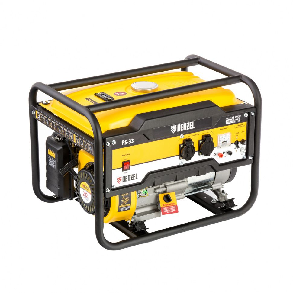 Экономичный, недорогой и простой в использовании бензиновый генератор Denzel PS 33, пригодится на природе, на строительной площадке, в торговой точке и дачном доме. Используется для подключения маломощного оборудования. Так одновременно к нему можно подключить в дачном доме: 5 ламп дневного освещения, ноутбук, холодильник, телевизор и электрочайник Без дозаправки может работать более 12 часов. Небольшой вес 43 кг позволяет легко перемещать и транспортировать генератор.Преимущества: - Справится даже неопытный пользователь - все элементы управления вынесены на переднюю панель и интуитивно понятны. - Легко контролировать работу с помощью вольтметра и индикатора уровня топлива. - Низкий уровень шума, выхлопа и экономичность благодаря двигателю с верхним расположением клапанов (OHV). - Можно подключать даже чувствительную технику, т.к. блок AVR обеспечивает работу без скачков напряжения. - Защита от работы при низком уровне масла, от перегрузки и короткого замыкания значительно продлевает срок службы генератора и делает работу с ним комфортной. - Качество работы и надежность обеспечивают: медная обмотка альтернатора, металлический распределительный вал и увеличенный диаметр провода обмотки статора. - Производитель дает гарантию 3 года.
